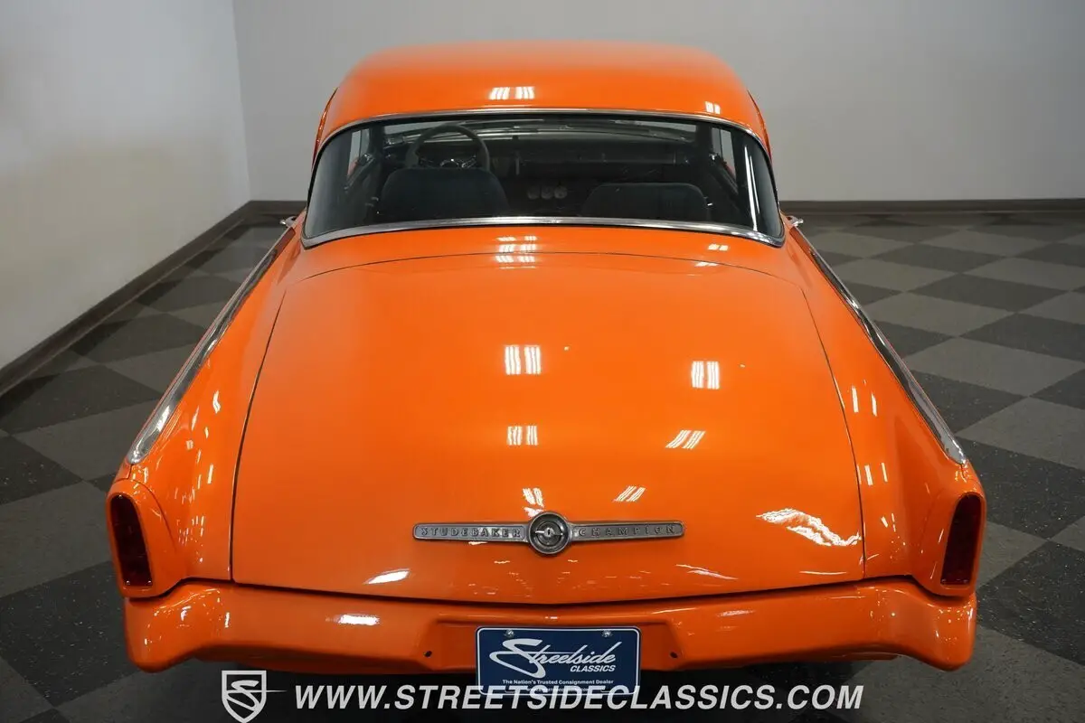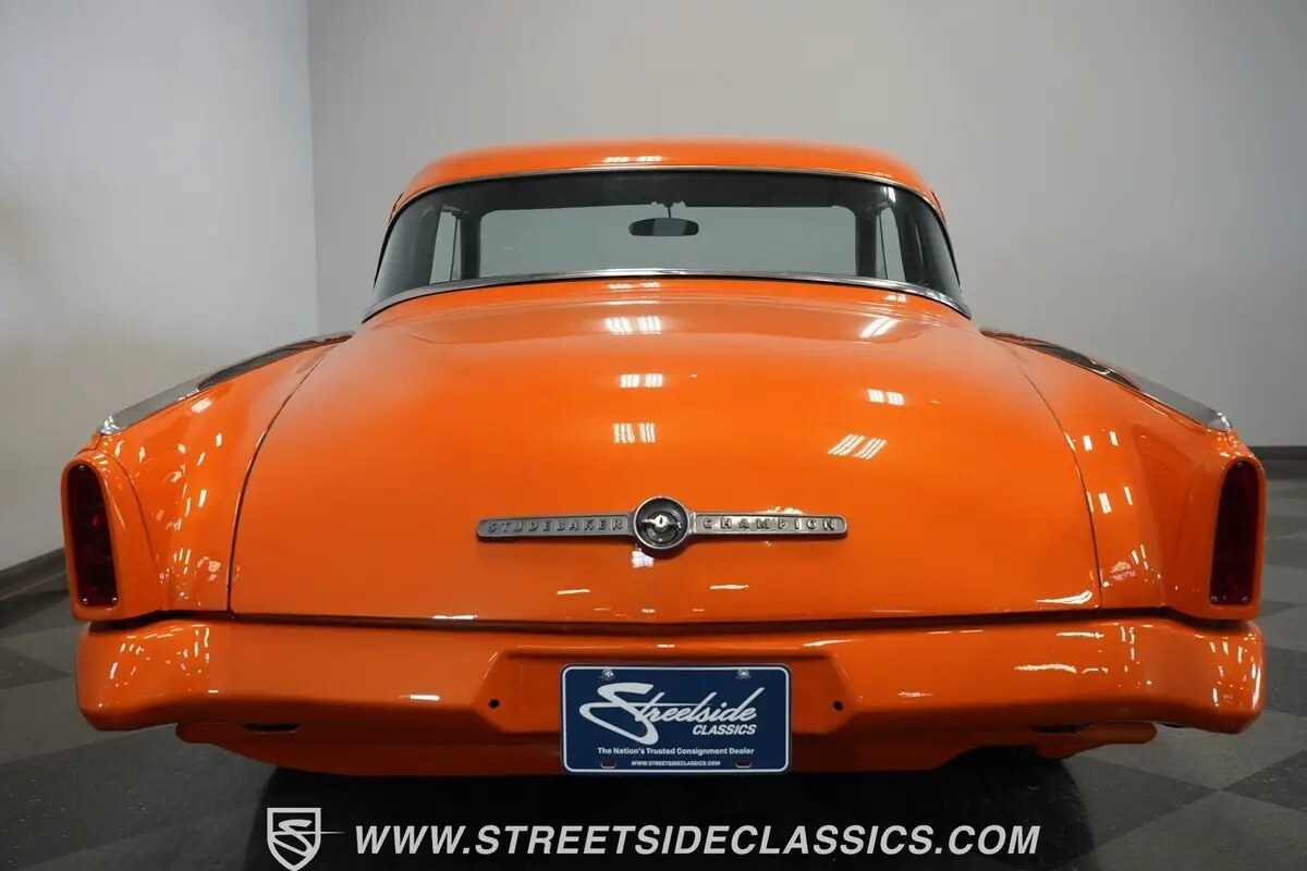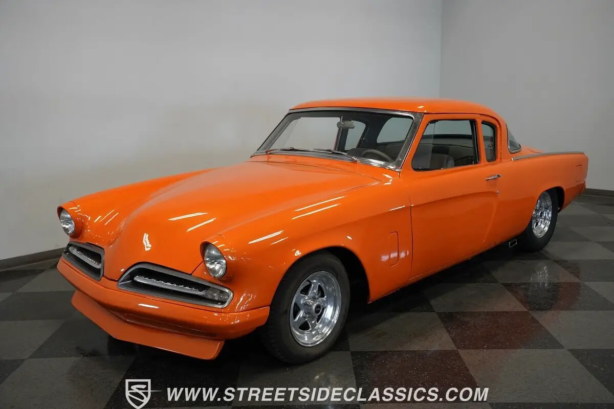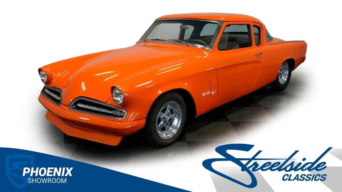 Vehicle Original VIN : GI3173524163-PHX 1953 STUDEBAKER COMMANDER RESTOMOD Orange paint covers this 1953 Studebaker Commander Restomod from bumper to bumper. The body features the original bullet nose front end and curved rear quarter panels. Weld aluminum 15" wheels are fitted with 185/80R15 tires in front and 255/60R15 tires in back. Front suspension includes control arms and coil springs with a sway bar, while the rear uses leaf springs and traction bars. Dual FlowMaster exhaust exits from underneath, and disc brakes are installed at all four corners. Gray custom upholstery transforms the cabin with a thoughtful mix of leather sides and cloth center inserts. Bucket seats provide modern support while maintaining the cabin's clean aesthetic. The dashboard receives a matching gray paint treatment that ties the interior theme together, while the aftermarket steering wheel adds a sporty touch. Three additional gauges beneath the factory cluster provide extra monitoring capability. The newer carpet and clean headliner complete the interior's well-executed transformation. Beneath that distinctive hood sits a Chevrolet 327 cubic inch V8 engine, paired with a Muncie 4-speed manual transmission. The single 4-barrel Holley carburetor sits atop an Edelbrock Performer EPS intake manifold. A dual FlowMaster exhaust with shorty headers provides a properly aggressive sound. Stopping power comes from disc brakes at all four corners, while power steering makes navigating this custom cruiser effortless. The front independent suspension with sway bar and rear traction bars work in tandem with the 10-bolt rear axle. HIGHLIGHTS: • 327 CI V8 Engine • 4-Speed Muncie Manual Transmission • Single 4-Barrel Holley Carburetor • Edelbrock Performer EPS Intake Manifold • Four-Wheel Disc Brakes • Front Sway Bar • Rear Traction Bars • Dual FlowMaster Exhaust with Shorty Headers • 10-Bolt Rear Axle • Front Independent Suspension with Coil Springs • Rear Solid Axle with Leaf Springs: • Orange Paint • 15" Weld Aluminum Wheels • 185/80R15 Front, 255/60R15 Rear Tires • Custom Gray Interior with Bucket Seats • Leather Side Panels with Cloth Center Inserts • Floor Shifter • Power Steering • Custom Dash Gauges • Aftermarket Steering Wheel Classic American styling with modern V8 power, this 1953 Studebaker Commander Restomod combines the best of both worlds. A stout 327 CI engine, manual transmission, custom suspension, and eye-catching orange finish make this Commander ready for cruising or showing. Call today!