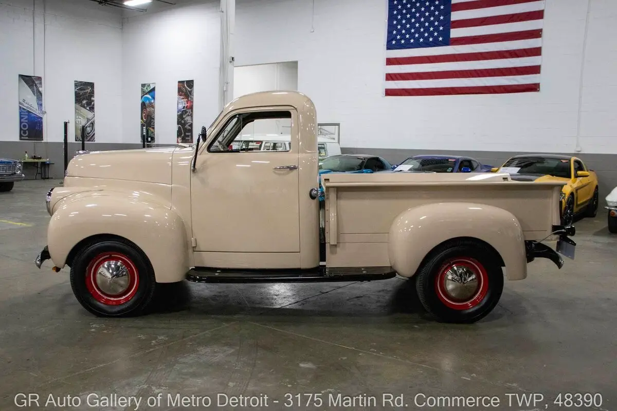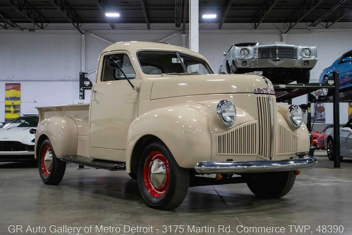 GR Auto Gallery is pleased to present this beautifully restored 1947 Studebaker Pickup for your consideration. Finished in a clean Beige exterior over a Brown interior, this classic truck underwent a full frame-off restoration within recent years and presents in excellent condition throughout. It is powered by a 169 cubic inch flathead inline-six engine paired with a 4-speed manual transmission, delivering a nostalgic driving experience rooted in postwar American design. This truck has been converted to a 12-volt electrical system for modern reliability and features crank windows, chrome front and rear bumpers, Firestone tires with chrome Studebaker hub caps, and a full-size spare mounted underneath the bed. Drive this one out of our showroom or have us assist with shipping it to you anywhere in the United States! Don't hesitate to call us with any questions or for more information.