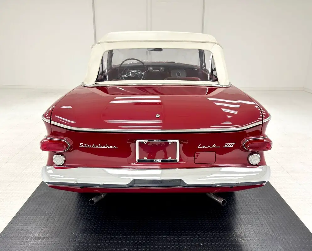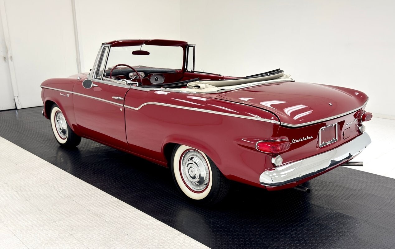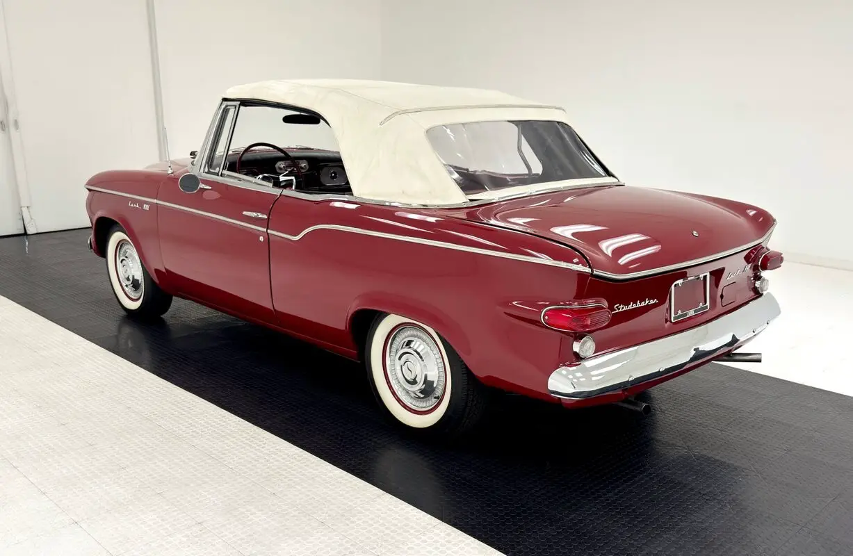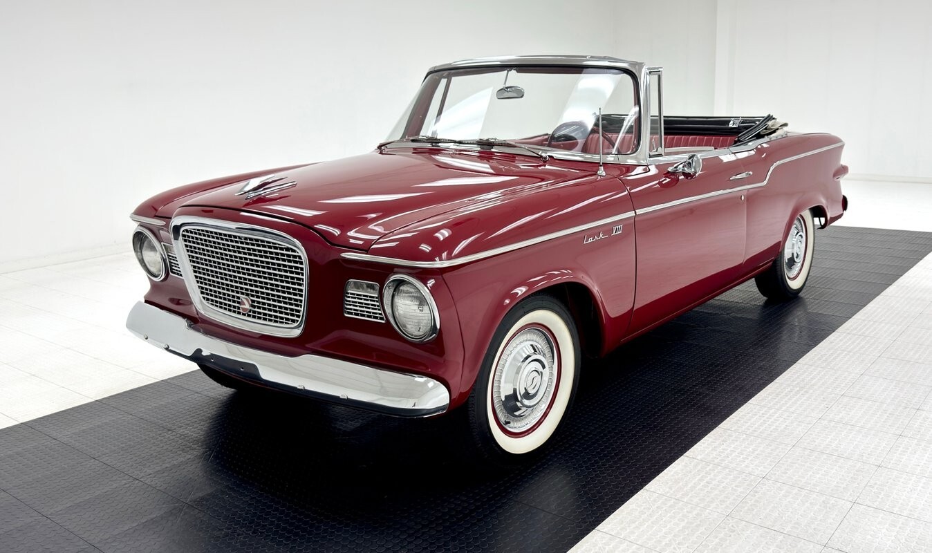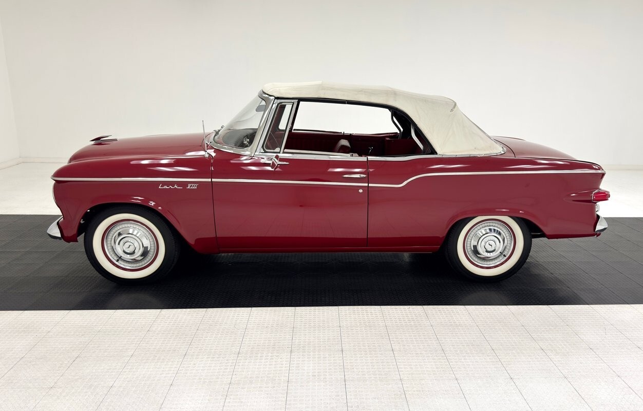 For consignment, a 1960 Studebaker Lark VIII Regal convertible showing 13,444 miles, but the true miles are unknown. The car presents very well and its 30 year restoration has held up nicely. It was restored by Palmyra Motors in Pennsylvania, a Studebaker dealer where the car was also purchased new.