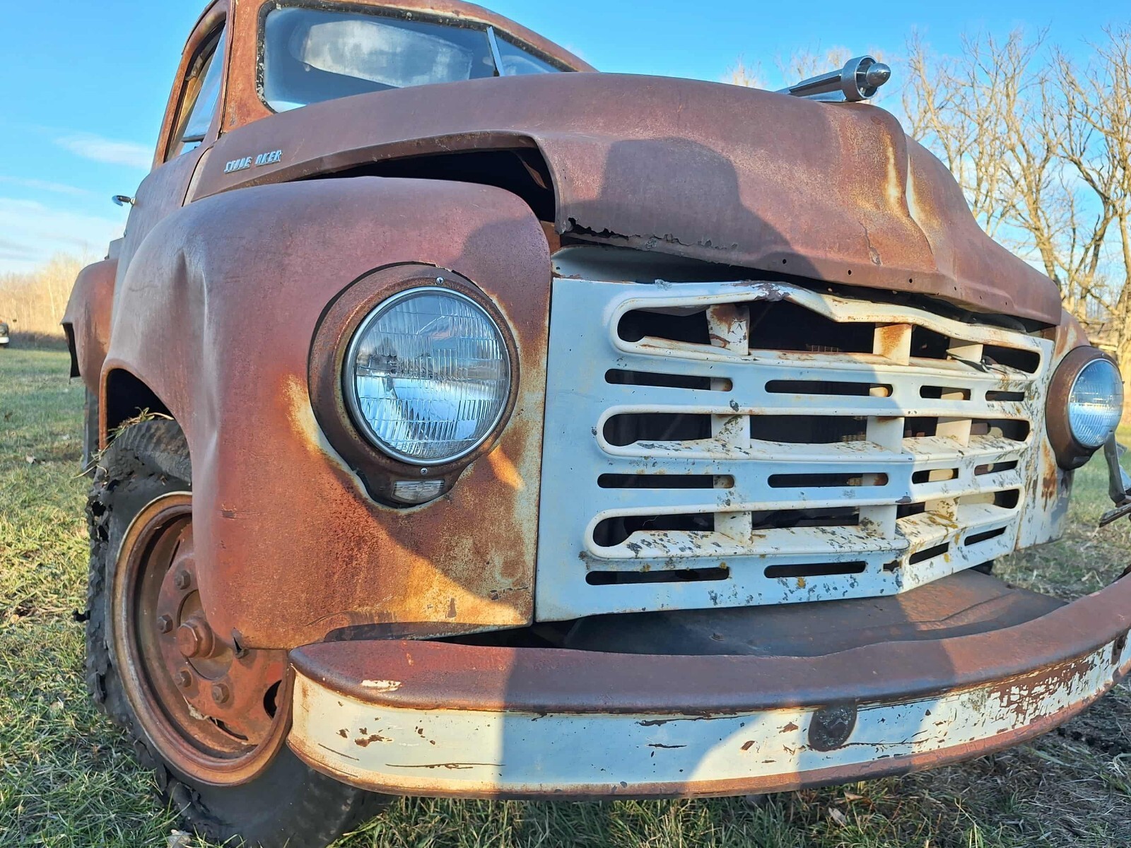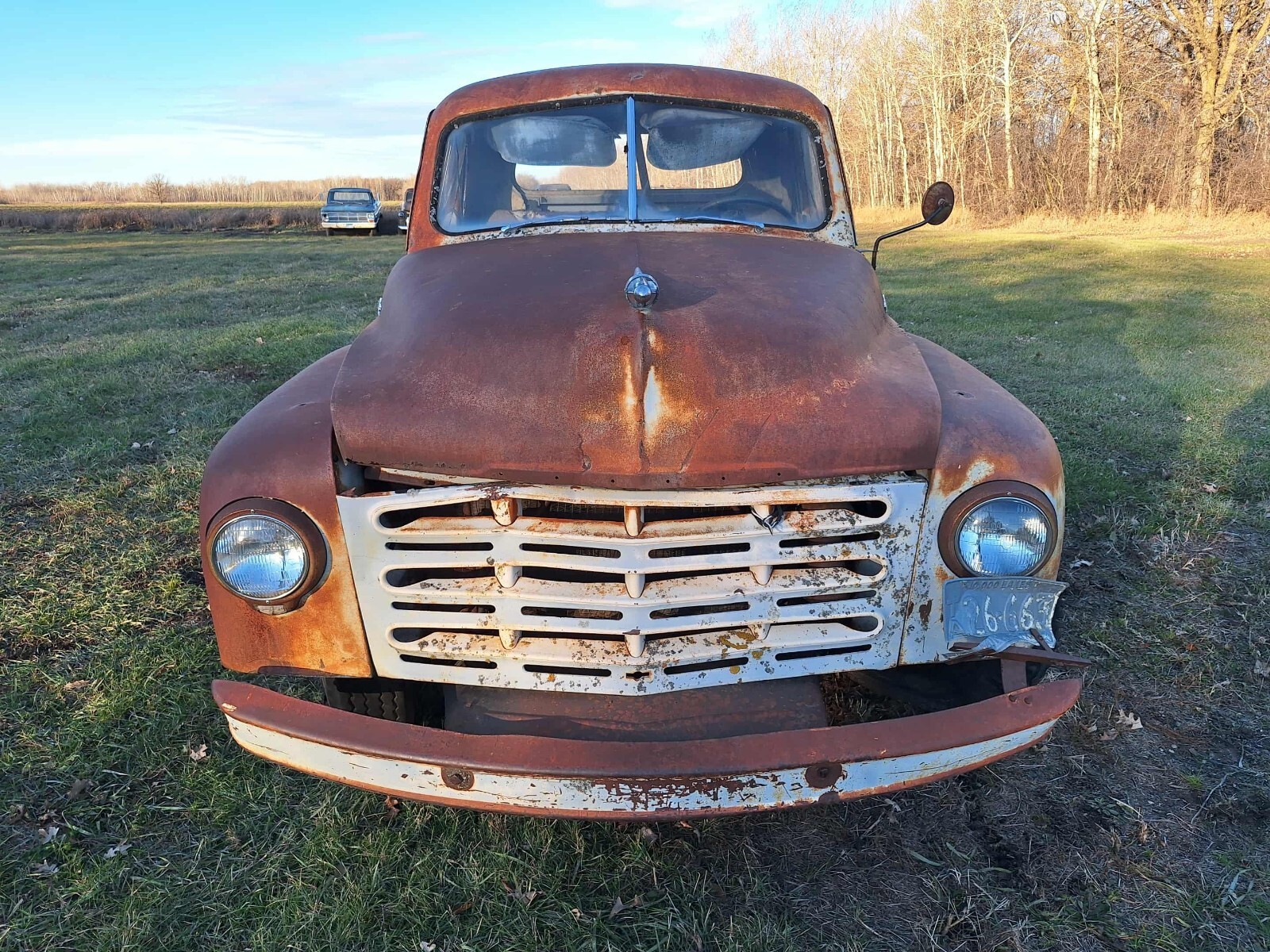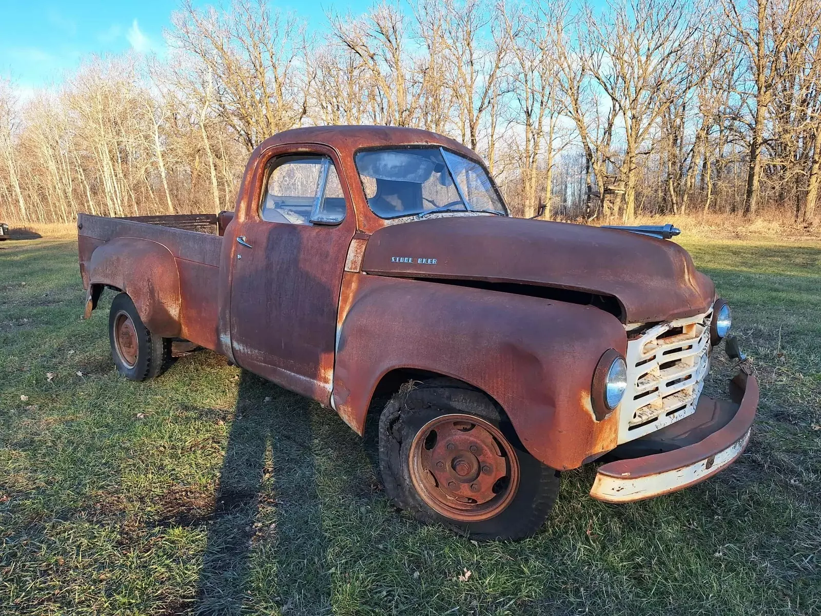 1949 Studebaker Pickup. Has the original 6 cylinder engine. The truck is not running and probably hasn't run in 40 years. Body has rust. Rolls and steers for loading. We also have a skidsteer and can help push this truck on the end of a trailer. No title. Asking $2000. Located in Thief River Falls, MN.