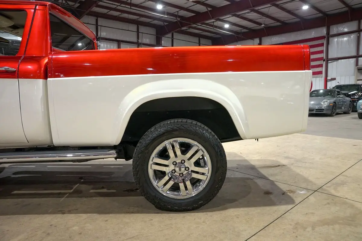 GR Auto Gallery is excited to present this 1964 Studebaker Champ finished in a stunning two-tone Orange Metallic and White combination. This unique pickup perfectly blends vintage Americana with modern engineering, creating a one-of-a-kind classic that drives as good as it looks. The exterior shows off the Champ's distinctive mid-century lines accented by gleaming chrome trim, a classic Studebaker hood ornament, and a set of polished 18-inch chrome Studebaker wheels wrapped in fresh tires. The look is finished with the right mix of nostalgia and custom flair, giving this Champ a proud stance that turns heads wherever it goes.