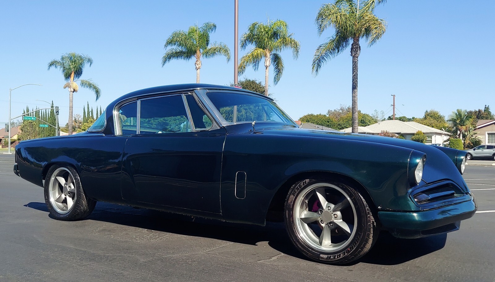 1953 Studebaker Starliner Champion restomod. V8 SBC/auto. Turner disc brake and dual master conversion. shaved, detrimed, lowered, monotone, smoothie front bumper, green dot tri bar headlights and has a bad attitude. sitting on 17's. full stoc, complete interior ready for personalization. both stock bench seat or porsche buckets. clear title in hand. worldwide shipping. sought after year and hardtop body style. older paint, colorsanded and polished to glass. on close inspection paint issues on deck and hood areas. fresh carb ready to dial in. long term California car with solid original floors and body. $500 non-refundable deposit due upon agreement to purchase. please inspect prior to bidding, as after auction games will take place. i consider this car a very small project. glad to assist with your shipping needs.