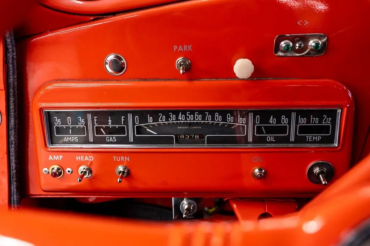The 2R5-12 Studebaker chassis is fitted with beam front suspension and manual steering. New Eaton-Detroit HD front leaf springs/shocks have been installed, and the rear leaf springs have been slightly lowered. New bushings and Stengel u-joints have been installed. The braking system has been upgraded with a dual master cylinder and a new Turner front disc brake conversion package. Rear brakes are drum units, and the original 18-gallon Studebaker fuel tank is in outstanding condition.