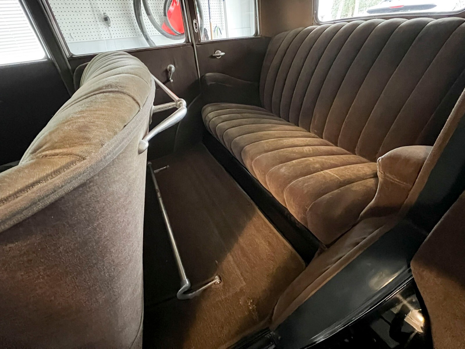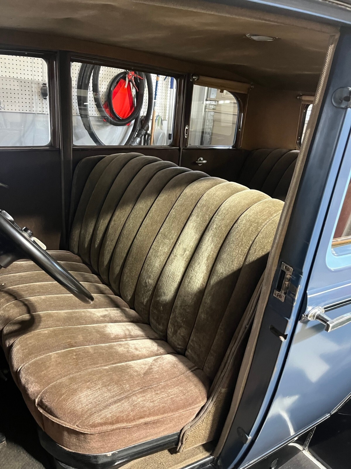 Interior is the original mohair (Angora goat hair) on the seats and door panels - remarkably excellent condition. Headliner is excellent