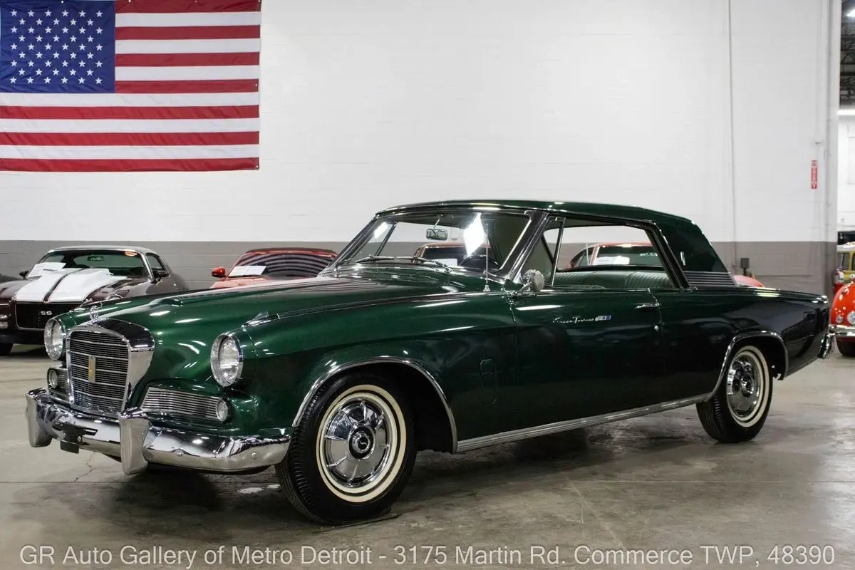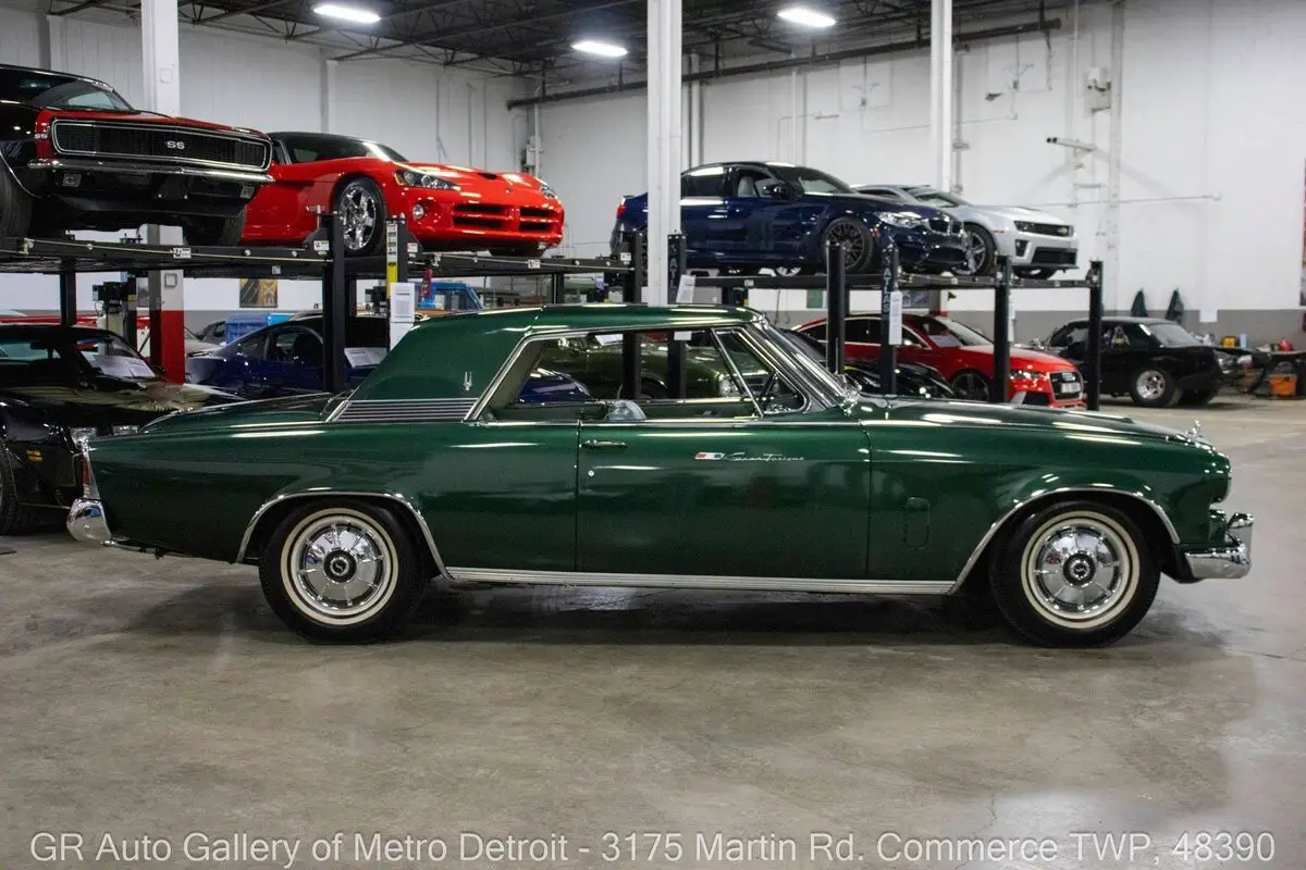 GR Auto Gallery is pleased to present this 1964 Studebaker Grand Turismo Hawk for your consideration. This Hawk comes in a stunning Horizon Green exterior over a Light Green interior with tasteful wood trim accents. Powering this Studebaker is a numbers matching 289 cubic inch V8 paired with an automatic transmission. Showing just 56,670 miles, this well-cared-for example was originally a Southern California car and has benefited from frequent oil changes and attentive ownership. This Studebaker is believed to be one of the last produced of in late December of 1963. Features of this Hawk include vintage air conditioning, functional heat, power steering, power brakes with front disc brakes, crank windows, an electric fan, chrome front and rear bumpers, white wall tires, a spacious trunk with a full-size spare tire, and the original owner's manuals. This classic Studebaker offers a smooth and comfortable driving experience with a great blend of originality and tasteful upgrades. Drive this one out of our showroom or have us assist with shipping it to you anywhere in the United States! Don't hesitate to call us with any questions or for more information.