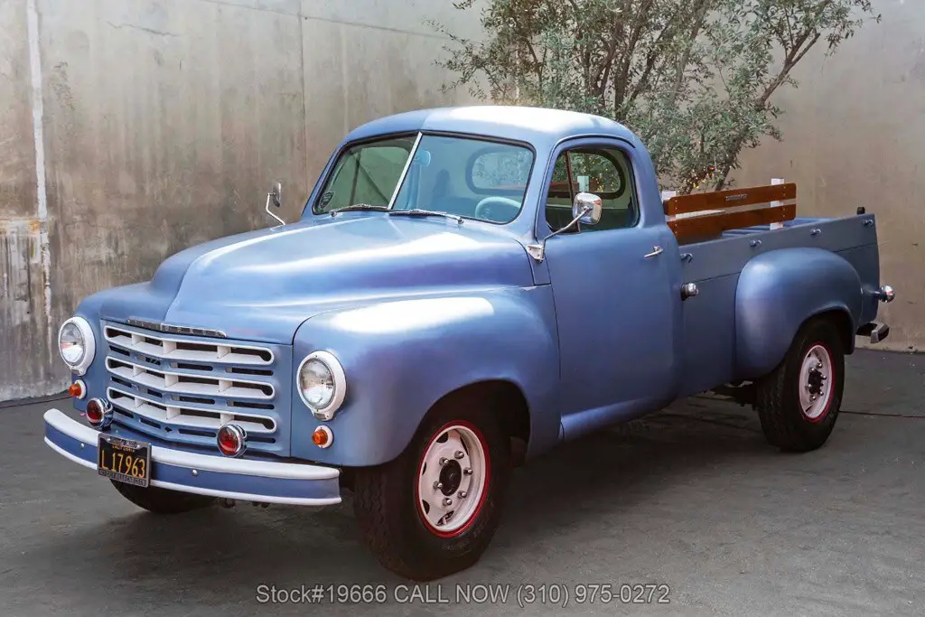 1953 Studebaker 2R11 Pickup Introducing this 1953 Studebaker 2R11 Pickup, finished in its classic Maui Blue with a blue interior. This vintage truck captures the enduring charm of mid-century American pickups, offering both style and functionality in one package. Highlights: - California Truck - 3-Speed Column-Shift Manual - Inline-Six Engine - Carter Single-Barrel Carburetor - Drum Brakes - Upgraded Air Conditioning - Two-Piece Split Windshield - Sony Radio - Modern Rear Receiver Hitch - Custom Stained Wood Stake Sides - Aftermarket Center Console - Large Diamond-Plate Aluminum Tool Box - 16-Inch Steel Wheels &#