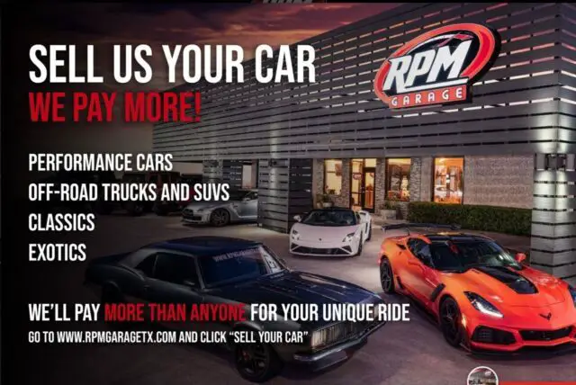 RPM Garage is a specialty car dealership conveniently located off I-35E in Dallas, Texas. With over 100 cars in stock, and new inventory arriving every day, we offer a wide variety of quality vehicles to make your dreams come true. Make sure to stop by and check out our BRAND NEW 40,000 sq/ft warehouse and take your dream car home TODAY!