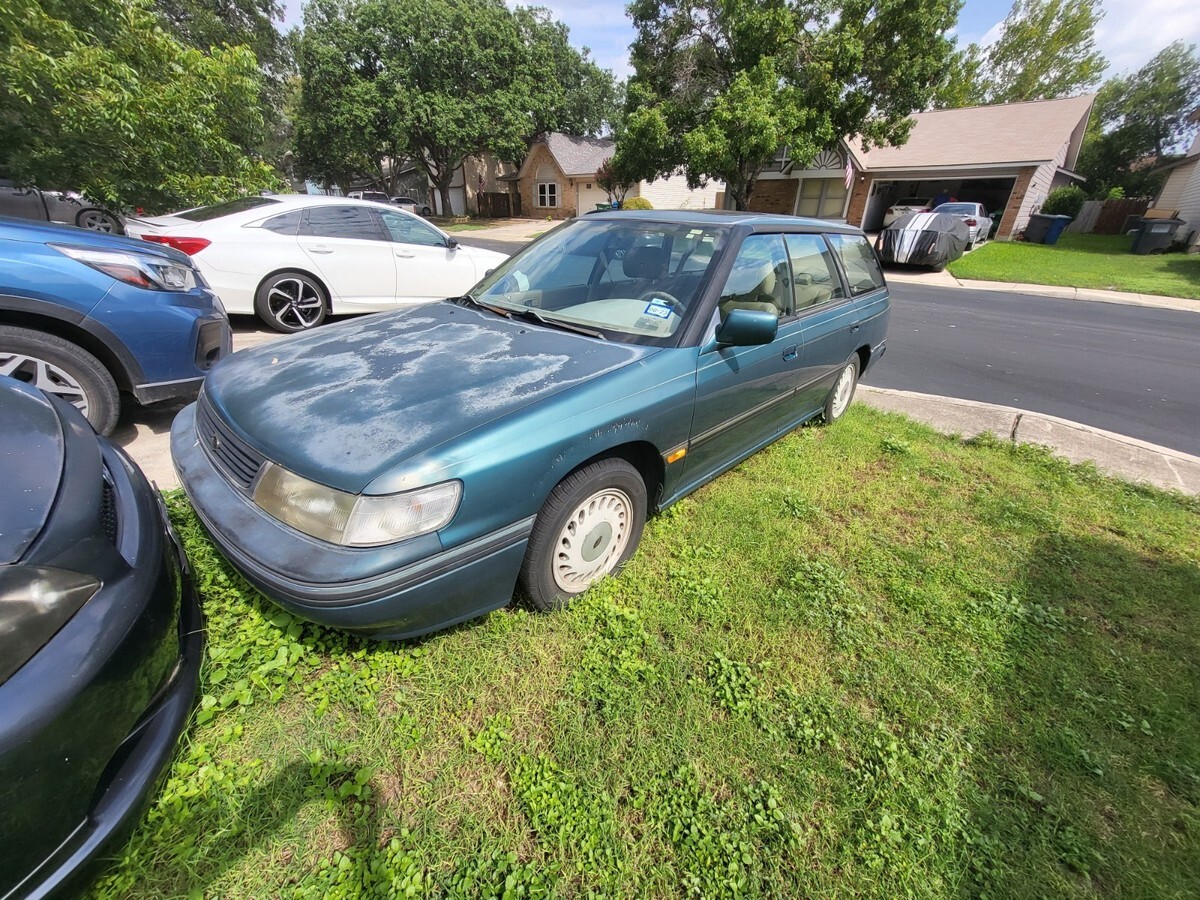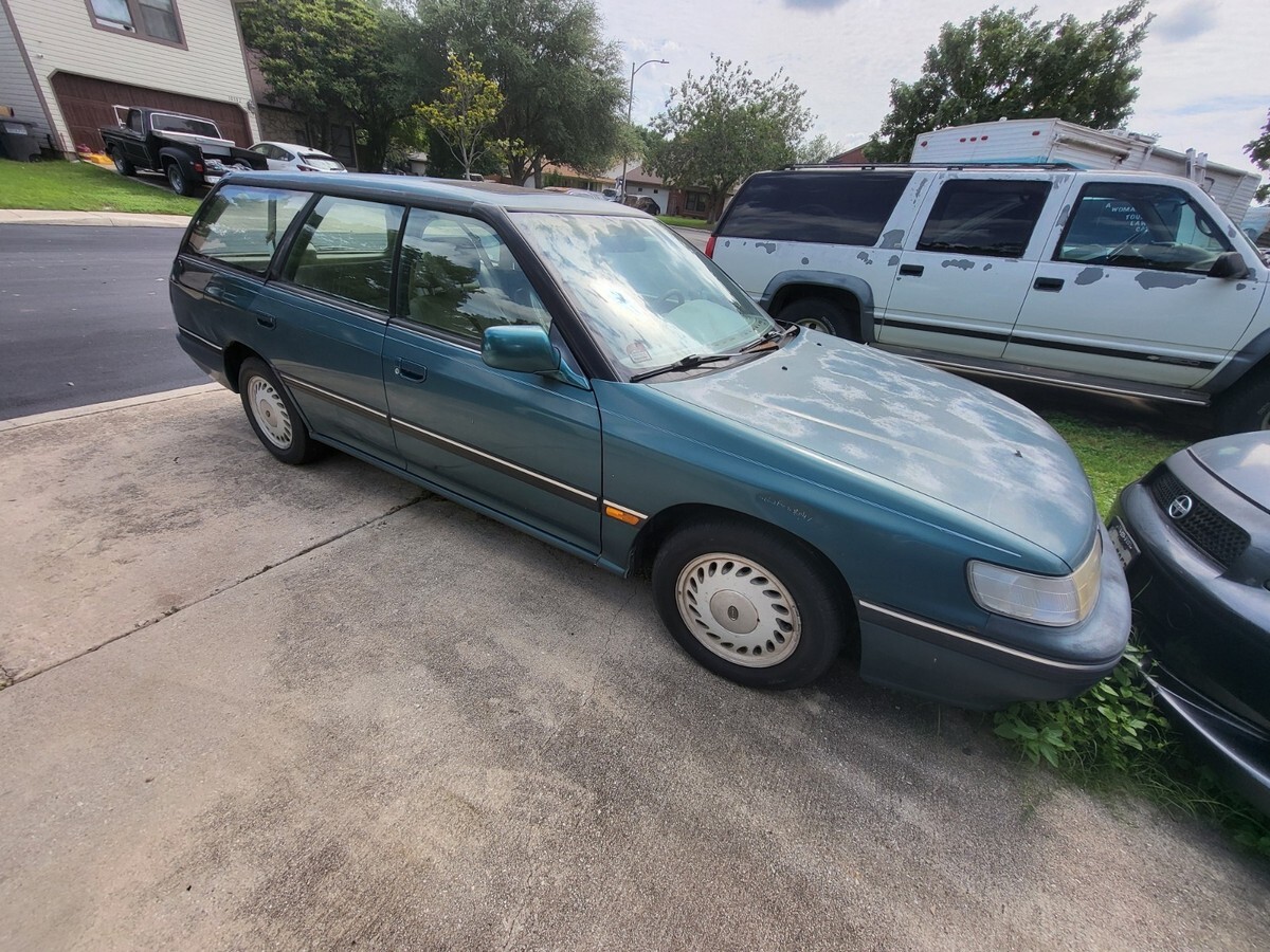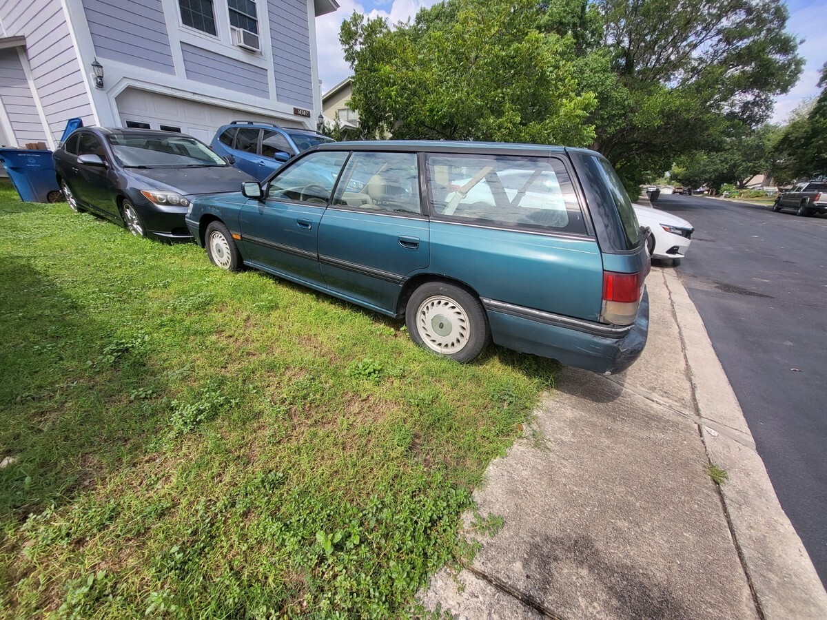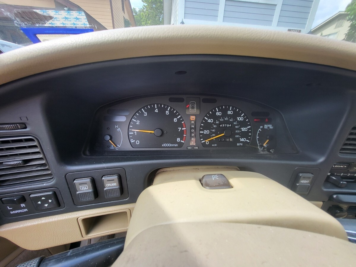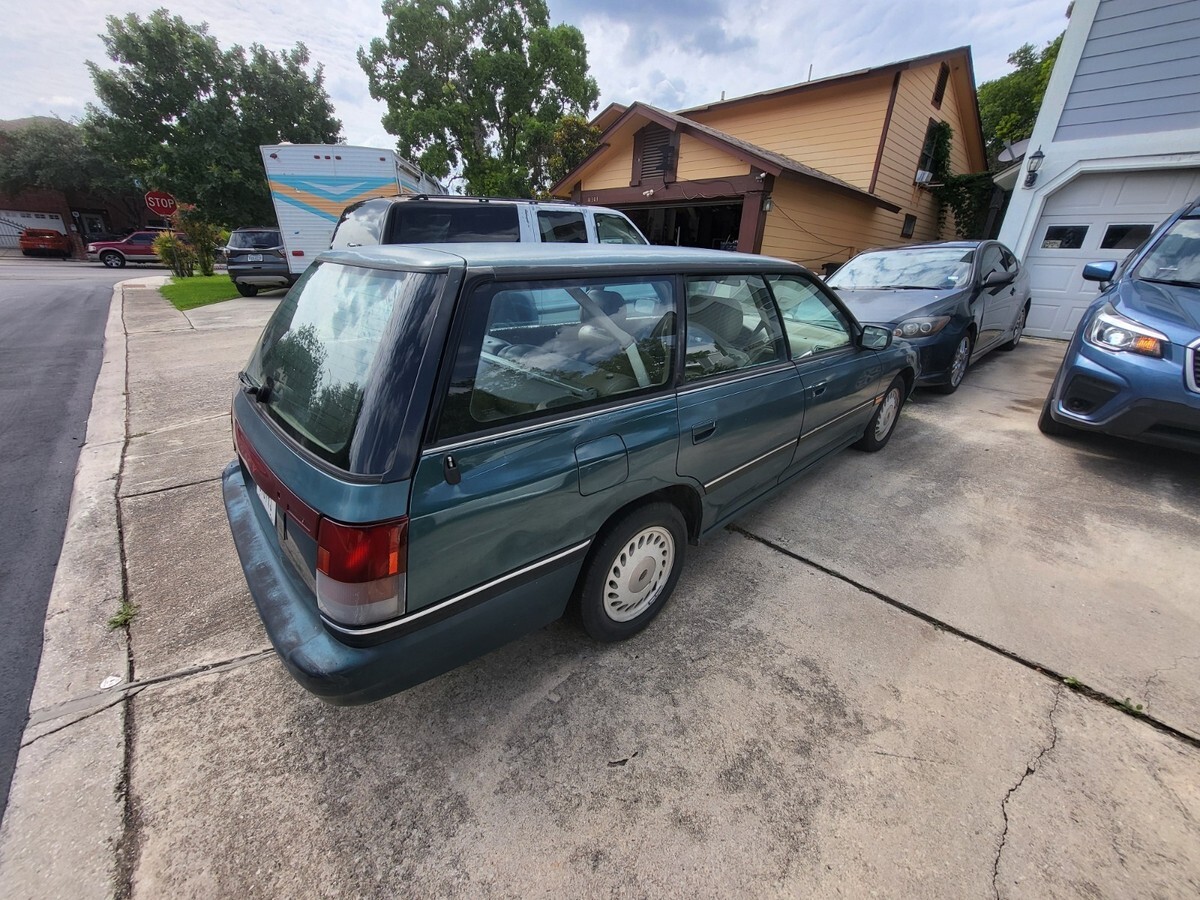 The 1994 Subaru Legacy LS is a wagon with a tan interior and green exterior color. This passenger vehicle has 5 seats and 4 doors, with a 143,794 mileage and 4 previous owners. It comes with an automatic transmission, 4 cylinders engine, and all-wheel drive. The LS trim includes features such as power windows, AM/FM stereo, cruise control, and leather seats, enhancing the overall driving experience. This classic Subaru model is a reliable option for those seeking a comfortable and versatile vehicle.
