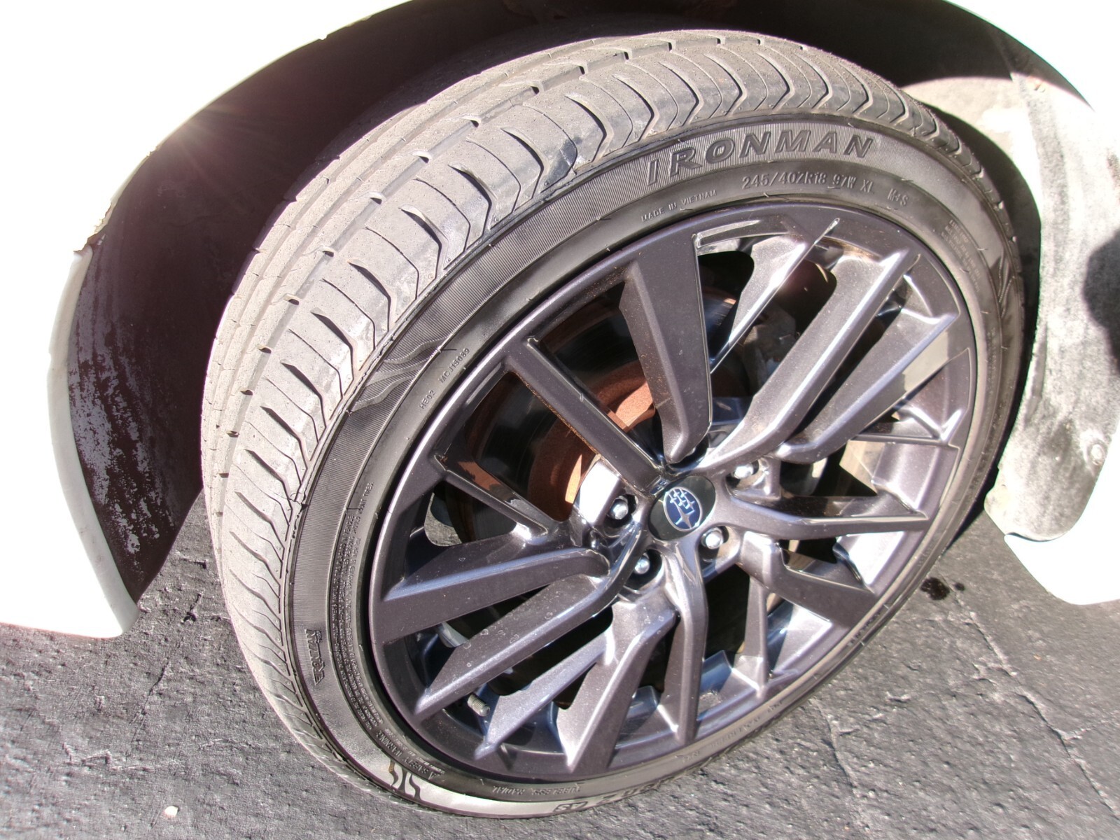 Safety and handlingare ensured with 4-wheel antilock disc brakes,driver'sside airbag,andautomaticseatbelts. Cutting-edge styling is accentuated withupdated18"glossblackSubarualloys, composite aero headlamps,solar-tinted glass,integratedrearwingspoiler,dualpolishedexhaustfinishers, and a lustrous two-tone finish.