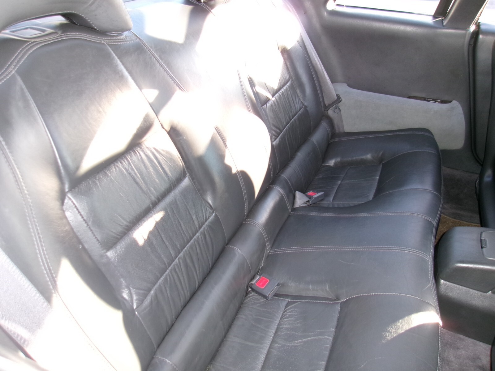 With seatbackupright,fourenjoythe ride in comfort on plushsportleatherbuckets in anairy trimmed withwarmwoodtonedash inlays; those in the rear enjoyeasy-entryseatbacks a centerconsolew/storage. Up front, dual heated buckets feature 10-way powerdriver adjustments and a versatile center console w/armrest and storage. A bevy of conveniences include anelectrictilt-n'-slide electric sunroof,electronicclimate control,a 6-speakerPanasonic AM/FM/CD/cassetteaudiosystem w/powerantennamast, power windows, power door locks, power mirrors, cruise control,variable-speed wipers, leather-wrapped tilt/telescoping wheel,electricreardefroster/wiper, and more!