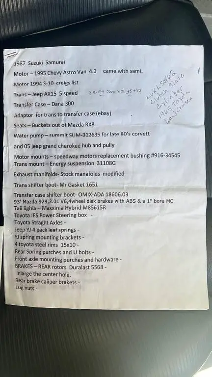 1997 Suzuki Samurai This heavily modified 1997 Suzuki Samurai features a custom off-road build with a 4.3L V6 Chevy engine, 5-speed Toyota Land Cruiser transmission, Dana 60 axles, and a Dana 300 transfer case. Highlights include power bucket seats from a Mazda RX-8, fully updated electrical system, and 35-inch all-terrain tires with a matching spare. The vehicle is street legal, drives great at highway speeds, and comes with detailed documentation. A winch is included but requires a gearbox rebuild. No air conditioning currently, but space is available for install. Located in Hudson, FL 34667 For more information, please call 833-265-6113 and mention ID 20901