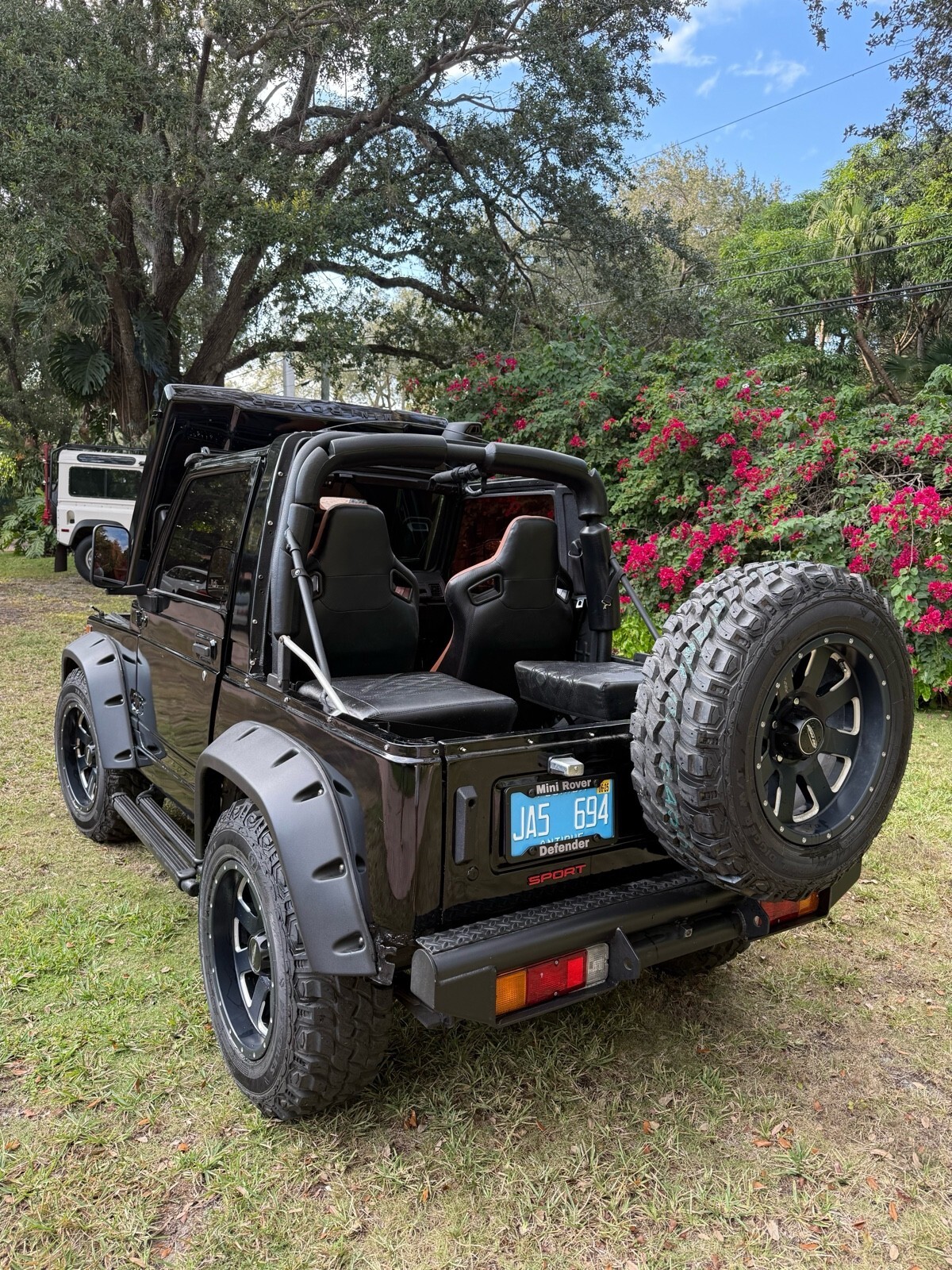 Up for sale is a 1991 Suzuki Samurai that has been fully customized into a unique Mini Land Rover Defender–style off-road build. This Samurai turns heads everywhere — it’s lightweight, open-top, rugged, and heavily upgraded both inside and out.