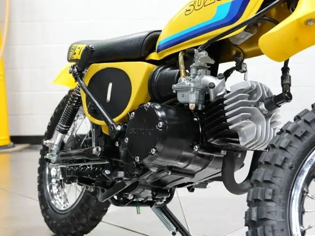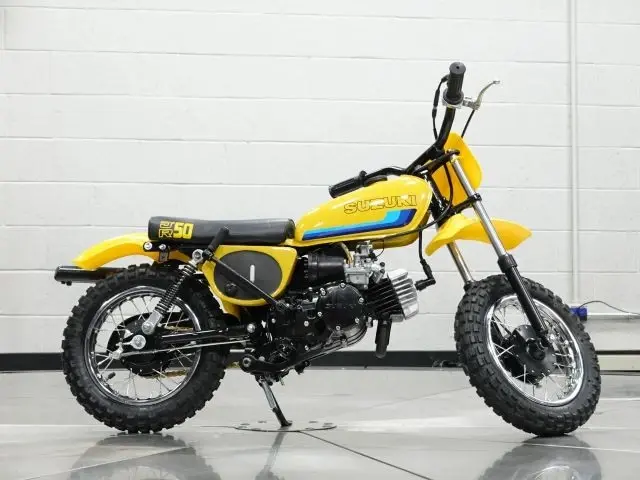 This beautiful 1978 Suzuki JR50 has been lovingly restored using OEM components, and it?s now available from the MAXmotive Pittsburgh Showroom. The bright Phlolina Yellow paint and chrome wheels really shine. Black accents include the seat, grips, and the engine itself. The correct blue graphics provide contrast and a performance look. The engine is an air-cooled 49cc two-stroke combined with a single speed automatic transmission that makes operating the bike simple and fun. New knobby tires work great on turf or trail. The JR50 was the smallest Suzuki model made up to 1978, and it?s just right for a variety of fun uses. Sold on Bill of Sale. See detailed photos at www.maxmotive.com.