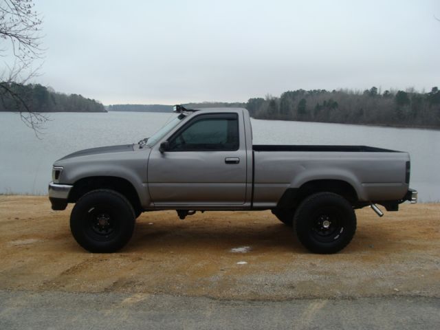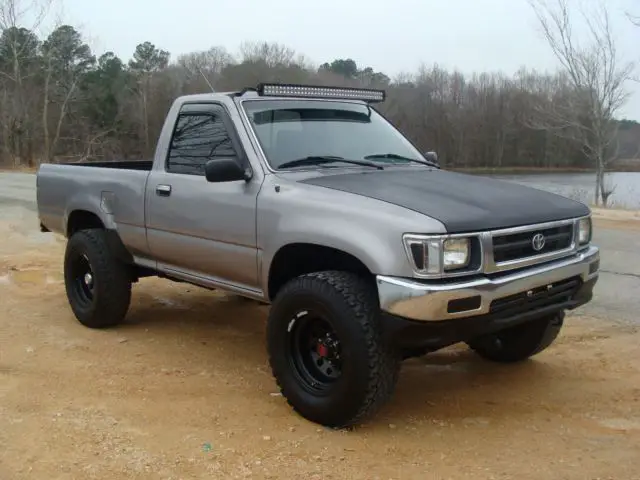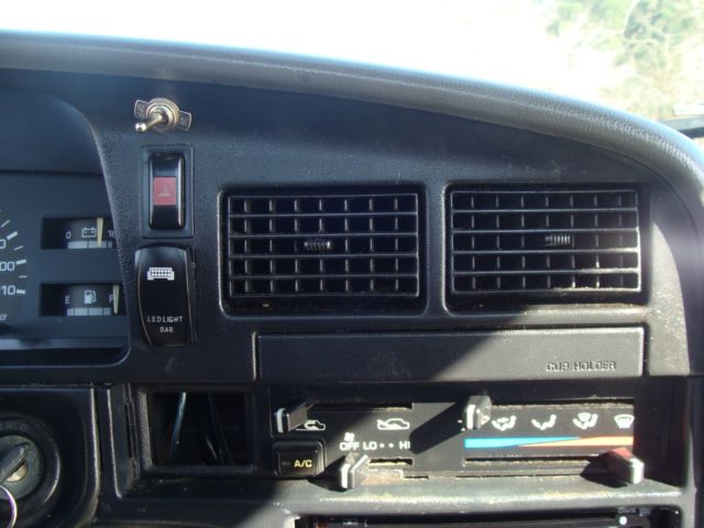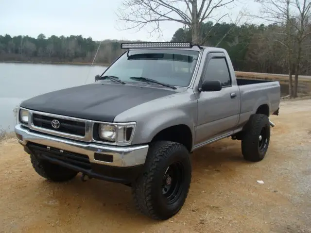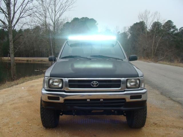 1993 Toyota Pickup 4X422re 4 cylinder motor5 speed manual transmissionfour wheel drive high and low (both work great)lock in lock out hubsworking cold air conditioning and heatPioneer touch screen stereogiant curved roof mounted LED light bar (works)cubed LED lights embedded into the rear bumper (they work)