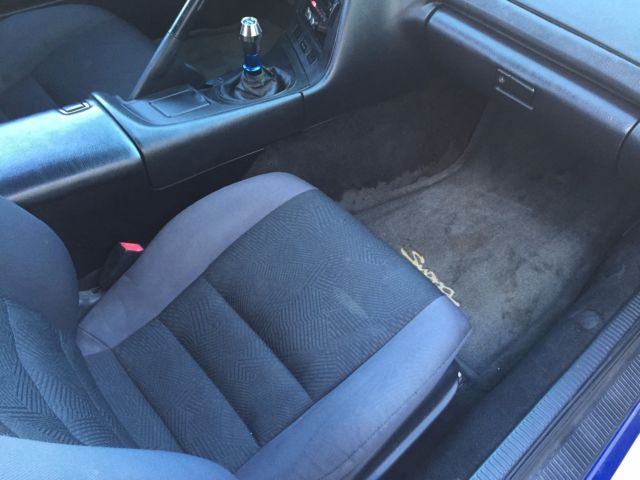 1994 Twin Turbo W58 5speed Hardtop. Original Silver and was repainted Nissan 350z blue. Paint is in good shape except for scratch and chip on drivers door. It has 77,304 miles on it now. It has a clean Maryland title, but when I pull carfax it shows salvage title 12 years ago, also odometer discrepancy. It looks like it was wrecked in the front pretty good. I think the front passenger frame rail was bent and they pulled it instead of replacing the rail. I included pictures of the underside frame rail to show the repairs. Car drives straight though. Just drove it back from Maryland 2000 miles with no issues and alignment is good. A/C is the only thing not working, I think the long line to the firewall was broken from the accident and needs to be replaced. All the A/C components are there though. Here's a list of basic list of current mods and maintenance done.
