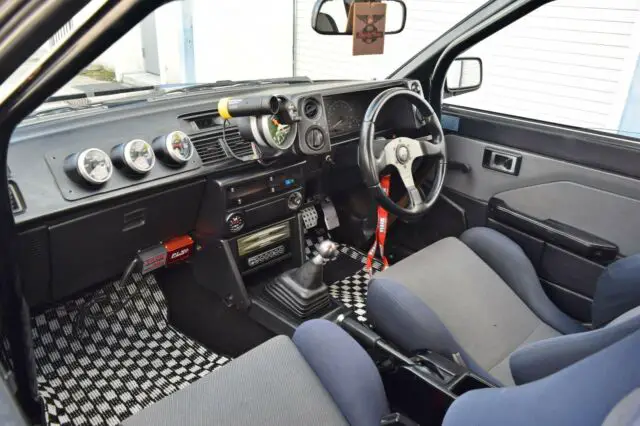 Interior has been fitted with a full roll cage. Seats are in good condition and are Recaro.Gauges in the dash function as they shouldAdditional DEFI gauges are all functional as wellas the AFR gauge in the center console. A Momo steering wheel has been added.Rear hatch glass has been replaced with plexiglass forlightweight purposes.Floors are super clean and this is 100% rust free car.