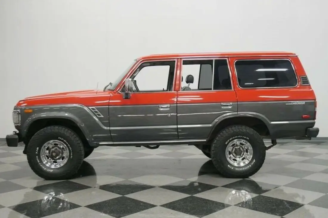 Land Cruisers are already a noteworthy sight on the classic scene as one of the true vintage SUVs. And this particular one shows off its distinction nicely with a two-tone utilizing the factory red and an added sliver/gray metallic lower section that's tasteful, yet vibrant. It utilizes the creases of the sheetmetal for a natural dividing line for a thoughtful presentation of the two colors. There are more nice details, like the upgraded headlights and tinted windows. But while this a well-preserved and well-presented classic, what you'll really love is that it upholds a proper Land Cruiser's instant off-road read appearance. The tall 4x4 stance, front tow hook, large side mirrors, and proper trailer hitch are all part of a package that isn't afraid to keep going when the pavement ends.