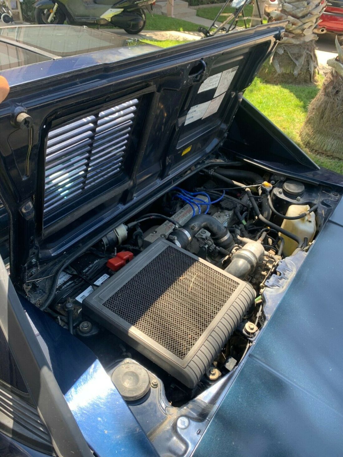The exterior is very good for a 30+ year old car with one minor sun damage spot on the top passenger rear of the car and a few of the plastics there is paint chip near the passenger mirror, also a missing piece near the rear spoiler.