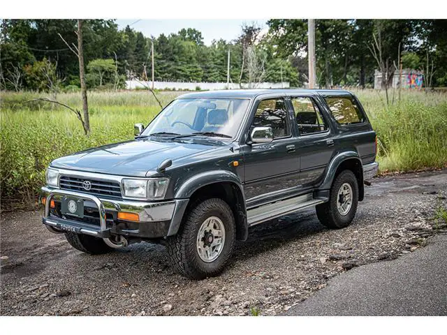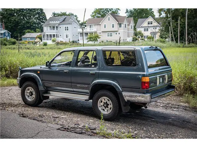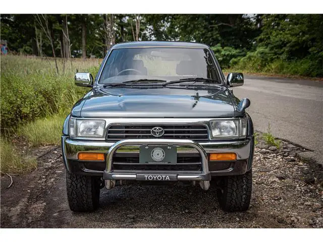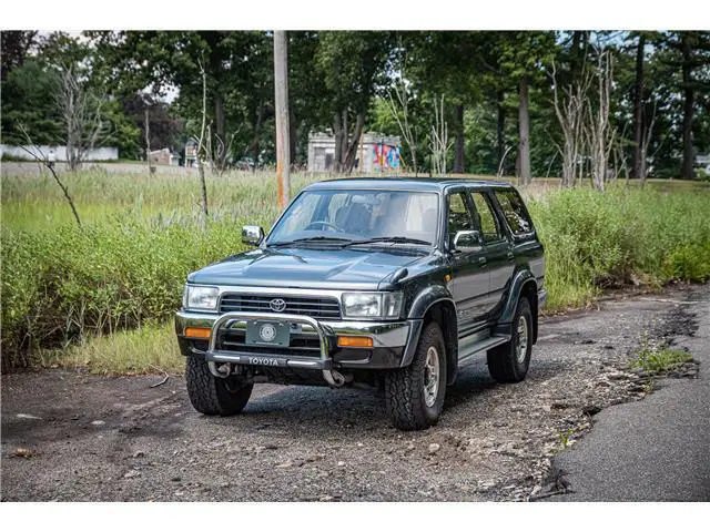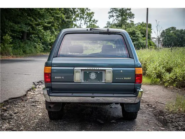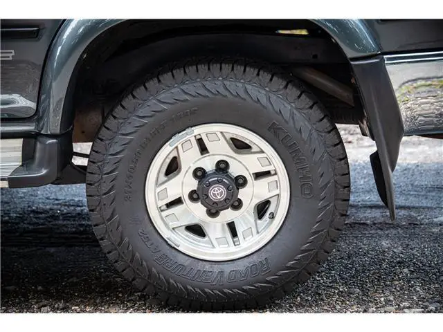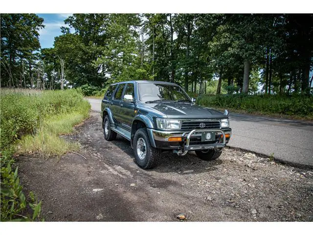 This 1993 Toyota Hilux Surf SSR-X is a very well optioned right-hand-drive example recently imported from Japan. It features the venerable 2.4L 2L-TE Turbo Diesel engine mated to a 5-speed manual transmission with four-wheel-drive as well as air conditioning, electric windows, alloy wheels, and upgraded Bridgestone Dueler tires. The interior of this truck is pristine, with little sign of wear present anywhere throughout the vehicle. The exterior is equally clean, featuring a beautiful shade of gray paint with chrome bumpers, wing mirrors, and an OEM chrome bull bar. This example was recently selected by The Saratoga Auto Museum in collaboration with Radwood to attend the 2022 New York International Auto Show as a booth vehicle.