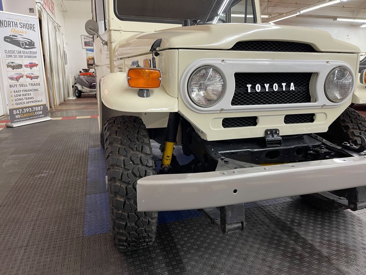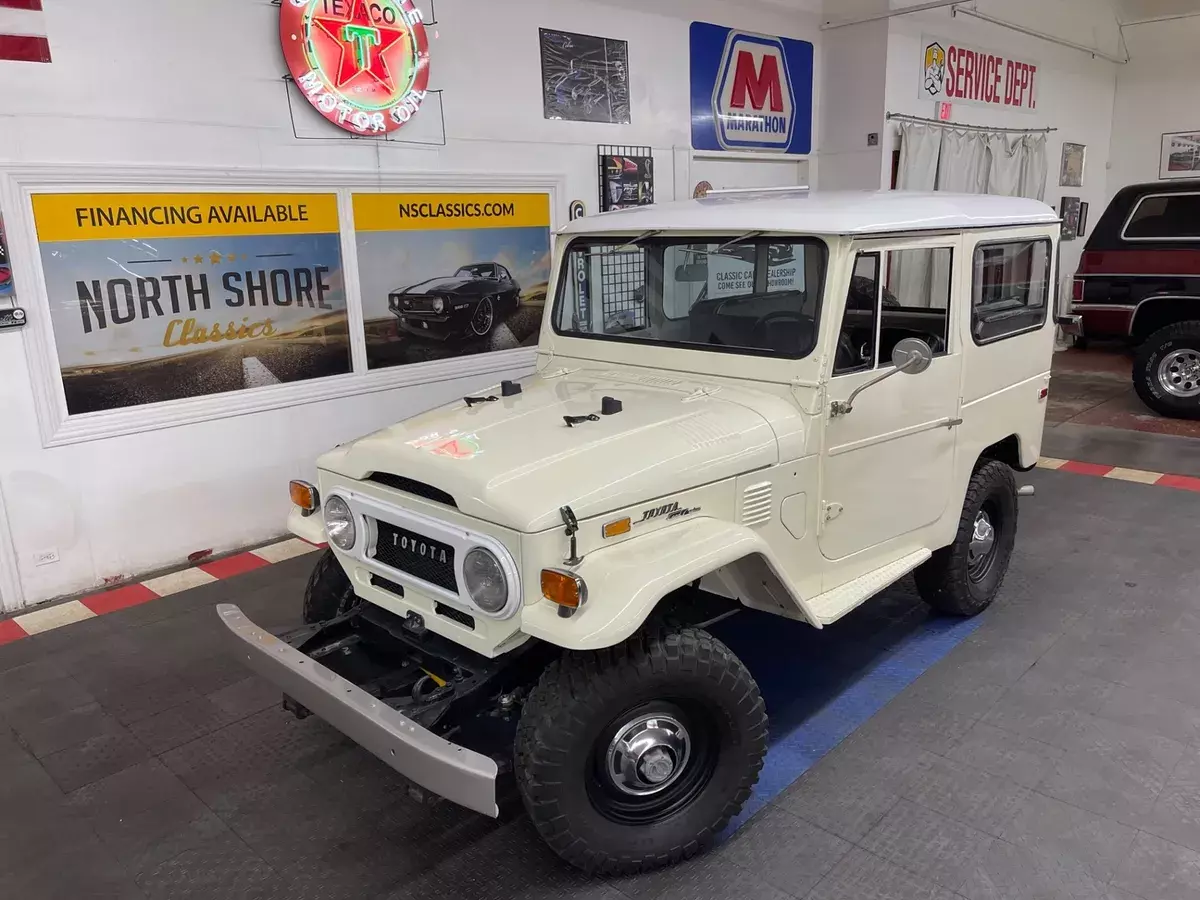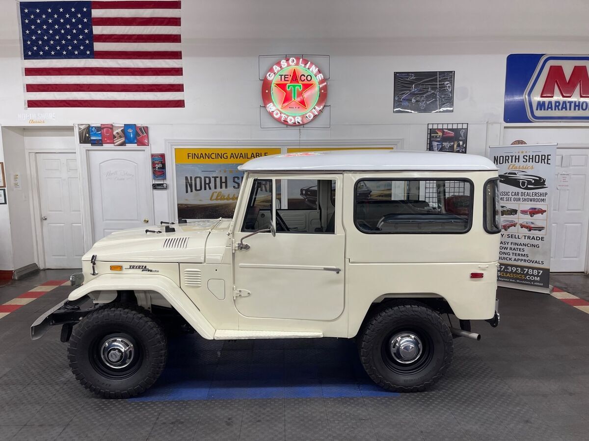 (844) 652-8767(844) 652-8767 12345678910111213141516171819202122232425262728293031323334353637383940414243444546474849505152535455565758596061of61 Full size photosVideo Full size photosVideo Toyota FJ 40 CREAM/WHITE with 68,621 Miles, for sale! Stock #: 722786DGCV Exterior Color: CREAM/WHITE Interior Color: Black Transmission: Manual Engine: 3.9L Mileage: 68,621 Vehicle Warranty