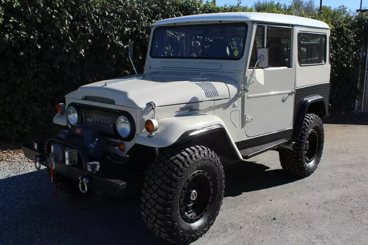 Up for sale is my FJ40 with bug catcher wing vents. I've owned this for close to 4 years and during that time I've been restoring it. I'ma car dealer by trade and typically only keep unique or rare things for myself personally. Originally I was going to take it down to my house in Baja but realized its too nice to take their to sit and rot away in salty environment, granted the cool factor would be off the charts. I've always been a Toyotaaficionado. It took me several months of deliberation to even consider the thought of selling this vehicle becauseI know I'll never be able to replace it. I have over $35k at my wholesale COST in receipts and service at my dealership/shop in Redlands not including the initial purchase cost of the vehicle. Its not cheap to build any vehicle thankfully this one already had the motor and trans done when I got it and they were done nicely. It took me two years to find a hard top. Its a 72 top. Yes its not period correct I know you Toyota purists will correct me on that, but the grill bezel is thick side up that should count for some points back in my corner. If you have you seen the visibilityof a 65 corrugated tops, they are less than desirable if you plan to run some simple errands to pick up stuff at Home Depot or the local plant nursery on your Sundaycruise you will find its hard backing up with the older hard top. This is a nice usable vehicle, its not a museum piece but a fun respectableweekend toy, that turns heads. When you fire up the V8 it starts every time (thank you fuel injection), it sounds absolutelyamazing with the dual side exit exhaust and headers. The mufflers are shielded underneath with stainless shields to protect from heat transfer inside. If I was to keep it I would add the vintage or classic air to make the summers more pleasant especially here in CA. I also have a Bestop soft-top that has never been used (just mocked up on the tub), just stored, and soft doors that goes with the vehicle. I have one large storage tote of misc parts and OEM Toyota gaskets that I will include. I also have the original speedo/cluster that I will include. Below is the specs of the vehicle: