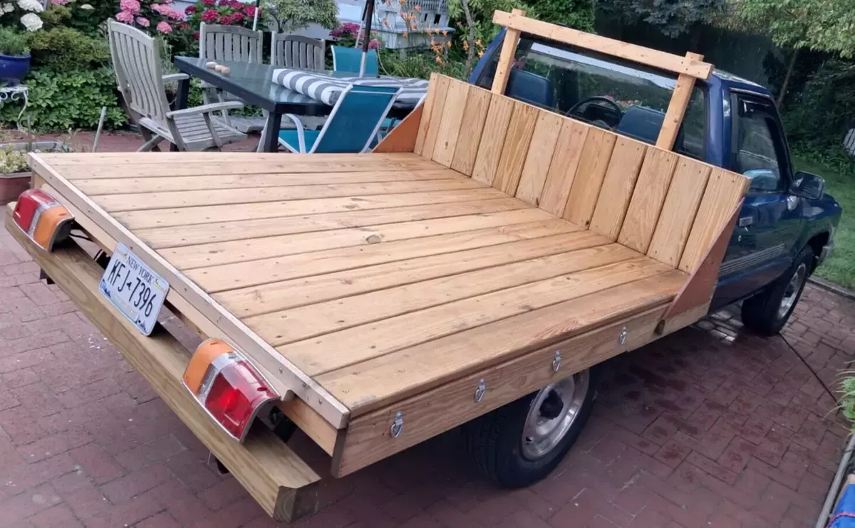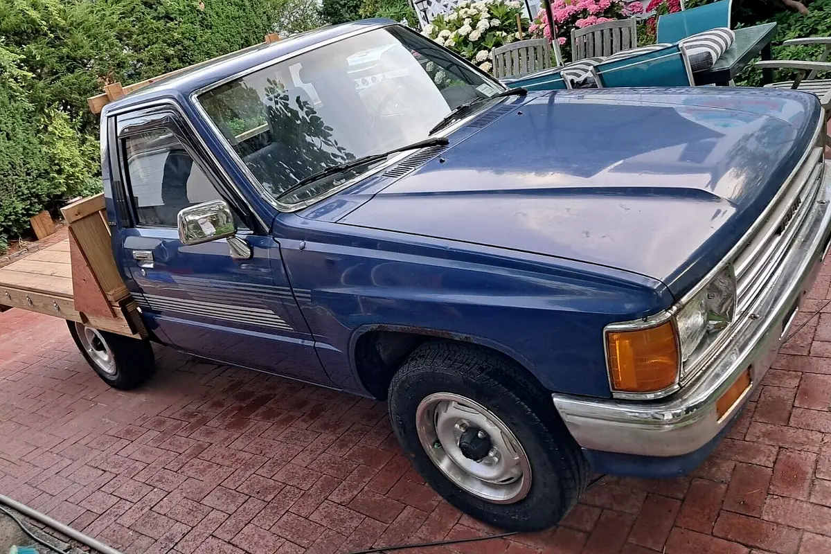 This 1987 Toyota 1/2 Ton Pickup is a great addition to your collection. With a standard cab pickup body type and 5 speed manual transmission, this truck is perfect for those who enjoy a classic, vintage feel. It has a 4 cylinder. and comes with a vehicle title that is clean. The truck has a mileage of 69,800 and seats up to three passengers. It has two doors and is a Toyota model from 1987. This 1/2 ton pickup with custom flat bed and tiedowns. is perfect for those who are looking for a reliable, vintage truck for their collection or shop truck, for everyday use.