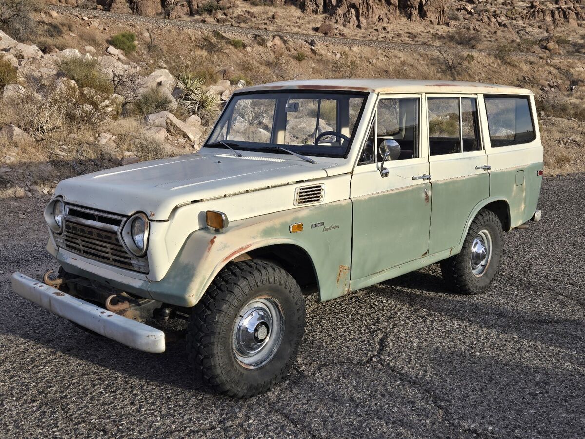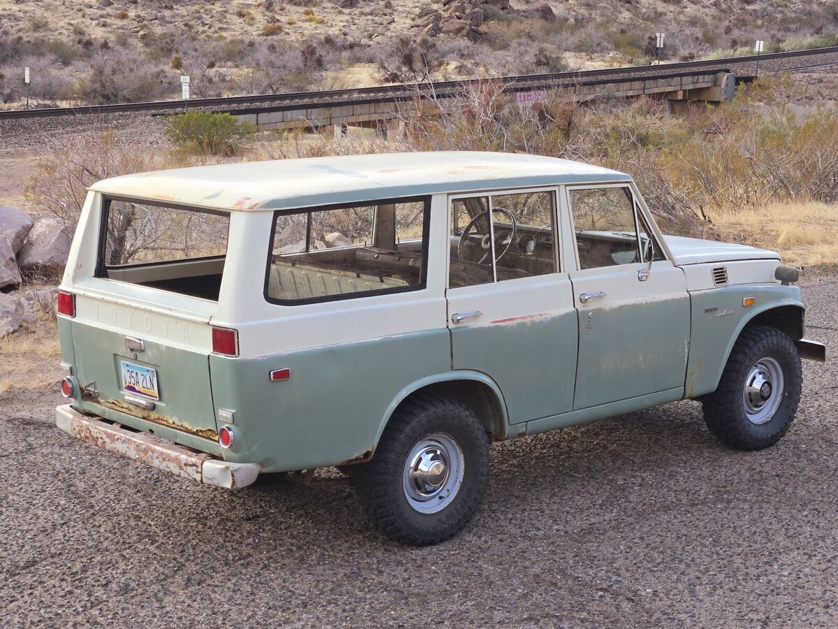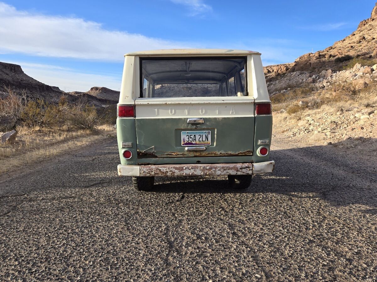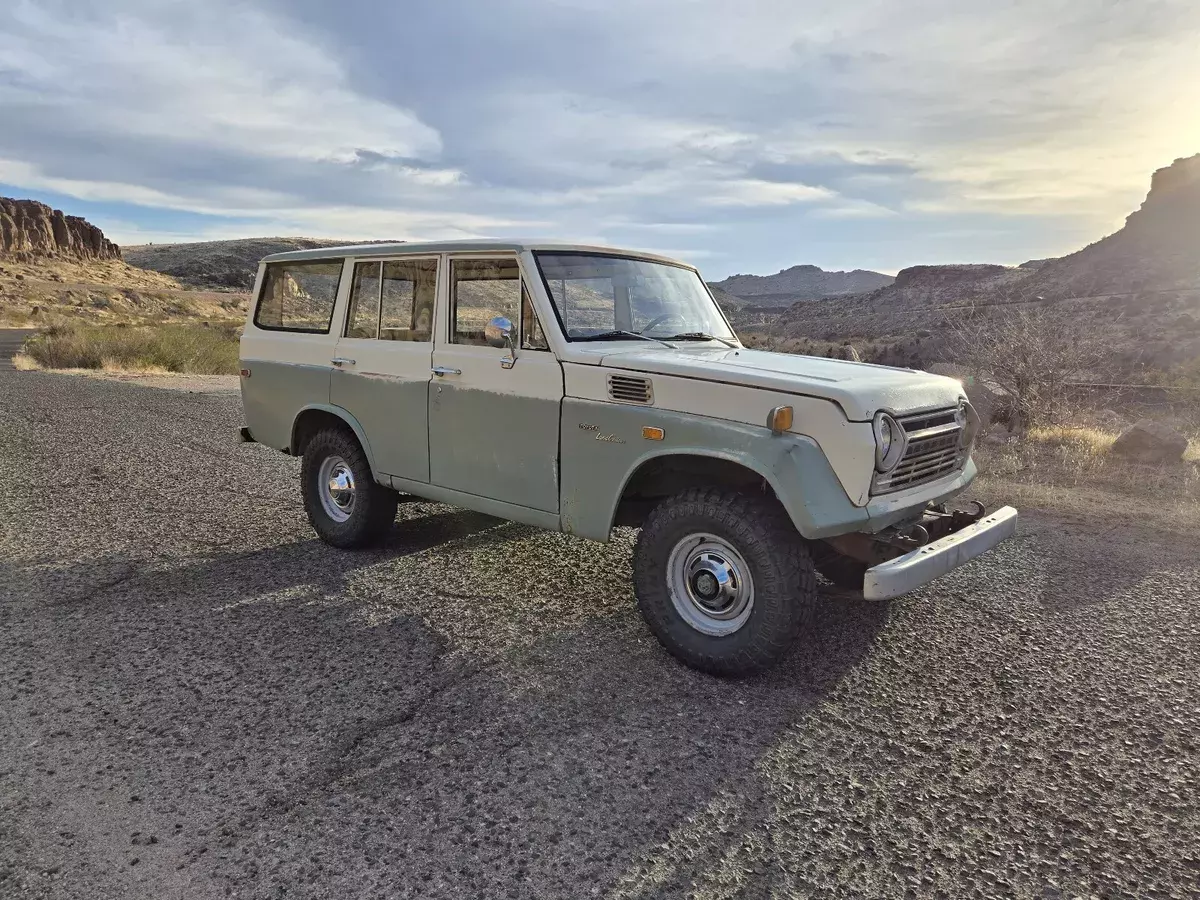 1970 Toyota Land Cruiser Fj55 . 4 door suv is in original condition, has had extensive work done to make driveable again,has been left in patina condition as much as possible, features a fully rebuilt engine bored .030, new electronic ignition distributor with coil and wires, re built carburetor with 450 mile, left in original patina underhood. Interior has working heaters front and rear, working rear electric tailgate window, interior dome light, features selectro 4x4 locking hub, working 4x4 with hi/low. New clutch kit complet, rebuilt clutch maste, slave cylinder, and hose,new transmission seals input and output .Gauges and lights in and out are all working . Original interior floor mats front and rear and back with added cheap floor mat on top. Steering wheel is wrapped in og vinyl cover. It has no headline, needs replacement. Seats have black slip over cover, factory seats can use a good recover front and rear. Windshield has 2 small chips and a star chip smaller than a dime . Brakes have been gone through, replaced Misc parts, new booster, rebuilt mastercylinder. Exhaust was replaced 6 years ago new muffler, It has many other parts I'm not mentioning.