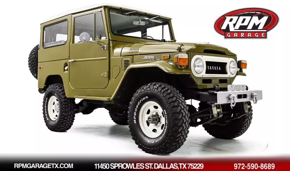 RPM Garage is a specialty car dealership conveniently located off I-35E in Dallas, Texas. With over 100 cars in stock, and new inventory arriving every day, we offer a wide variety of quality vehicles to make your dreams come true. Make sure to stop by and check out our BRAND NEW 40,000 sq/ft warehouse and take your dream car home TODAY! LET US FINANCE YOUR DREAMS!CLICK HERE TO BEGIN! We are proud to offer you this 1971 Toyota Land Cruiser FJ40 Recently Restored with Many Upgrades for sale!This 1971 Toyota Land Cruiser FJ40 is a capable off-roader that has been restored to its original glory and taken to the next level. Under the hood is a 3.9-liter inline six-cylinder engine that shifts its output to the wheels through a three-speed manual transmission and a dual-range transfer case. Sitting on HFS Suspension shocks and equipped with power steering, this capable machine is ready to handle anything thrown at it. This unique off-roader comes equipped with white-finished 15" wheels and is finished in custom earth-toned paint that makes it look even more rugged. In the black vinyl interior, this Land Cruiser offers plush front seats, inward-facing vinyl rear jump seats, polished interior trimmings, a tri-spoke steering wheel, and color-matched interior panels, truly making this vehicle the complete package.LIST OF FEATURES & UPGRADES:3.9-LITER INLINE SIX-CYLINDER ENGINETHREE-SPEED MANUAL TRANSMISSIONHOLLEY CARBURETOR? SINGLE-TIP EXHAUSTCUSTOM EARTH-TONED PAINT FINISHWHITE-FINISHED 15" WHEELSHFS SUSPENSIONS SHOCKSDUAL-RANGE TRANSFER CASEMANUALLY LOCKING FRONT HUBSPOWER STEERINGHFS SUSPENSIONS FRONT BUMPERWHITE-FINISHED REMOVABLE HARD-TOPBRUSHED EXTERIOR TRIMMINGSPOLISHED "TOYOTA" EMBLEMSREAR-MOUNTED SPARE WHEELREFRESHED HEADLIGHT AND TAILLIGHT LENSESWELL-EQUIPPED BLACK VINYL INTERIORPLUSH FRONT SEATSINWARD-FACING VINYL REAR JUMP SEATSPOLISHED INTERIOR TRIMMINGSTRI-SPOKE STEERING WHEELCOLOR-MATCHED INTERIOR PANELSCARPETED FRONT FLOOR LINERAND MUCH MORE! At RPM Garage we love taking care of our customers and we are all about building a relationship with our clients to continue helping them in each and every one of their car needs for years to come. Become a part of our family and visit our showroom today! We offer free airport pick-up, extended warranties, worldwide shipping, and much more! We welcome third party inspections! We love TRADE-INS!!EXCELLENT FINANCING OPTIONS! CONTACT OUR SALES TEAM AT:972-590-8689 SE HABLA ESPAÑOL! FALAMOS PORTUGUES! CLICK HERE TO SELL US YOUR CAR!?We would love to buy your car. Click the text above ^^^ to get an appraisal quote as soon a possible on your car, we would love to check it out. Whether you buy a car from us or not, we will still pay more for it than nearly any other dealership! HOURS OF OPERATION:Monday - Friday: 10AM - 6PM Saturday: 10AM - 5PM Sunday: Closed