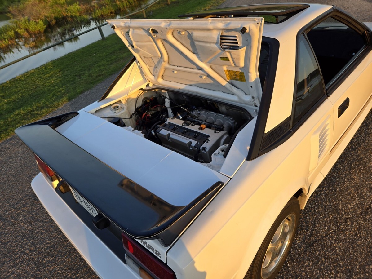 Restored 1986 toyota mr2 with honda k24a2 engine swap. This is my project car for the past 4 years. Got it abandoned at an estate sale and have been replacing almost every part of the car to get it road worthy.For full list of what is done to the car please message it is way to much to list it all.Highlights- all parts have 1k miles on them or less. Car runs, drives and dynod at 245whp 180tq at 8500rpm. With this light of a car it screams and is pretty quick.I built it to be a fast fun reliable street car. However it is not a daily driver it needs to go to someone who knows how to work on cars and keep improving/refining it. It's a great starting point to make the car into what you want it to be. It's raw fast loud and a ton of fun I promise the first time you rip it to the 8400rpm redline you will be smiling.Cons- no a/c. I have all the parts but never finished hooking it up. Loud on the highway. Driver window is slow to rollup. No working radio i used earbuds instead. Headlight switch is loose but works. Has small imperfections and some hail dentsPros fully rebuilt k24a2 2007 acura tsx engine and 5 speed rsx transmission with added lsd and higher final drive. Lightweight Flywheel and clutch. Skunk 2 street intake manifold. K tuned headers custom magnaflow exhaust. 70mm ktuned throttle body. 3 inch carbon intake. Haltech elite 1500 standalone professionally tuned and dynoed. Powertune digital dash. Lithium battery with battery tender. Epic houndstooth corbeau seats. 3m white wrap. New tires. Oem refreshed suspension. New wilwood techno toy tuning front big brake kit. Lightweight fiberglass hood and trunk.Tons of spares all included with the car.