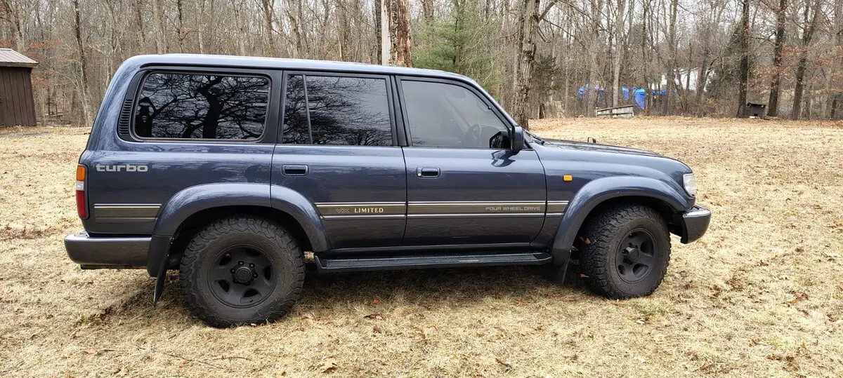 Japan import JDM-RHD Auto landcruiser. Complete bodywork overhaul in original color (metalic grey). All new door seals and window rubbers (Toyota OEM). Original wheels re finished in matt black with 5 BFG all terrains.timing belt changed in last 2-3 years. New starter, alternator, full 3" exhaust system. New Injectors and pump seals.Kenwood double din android ready flatscreen stereo and Viper alarm with remote start.