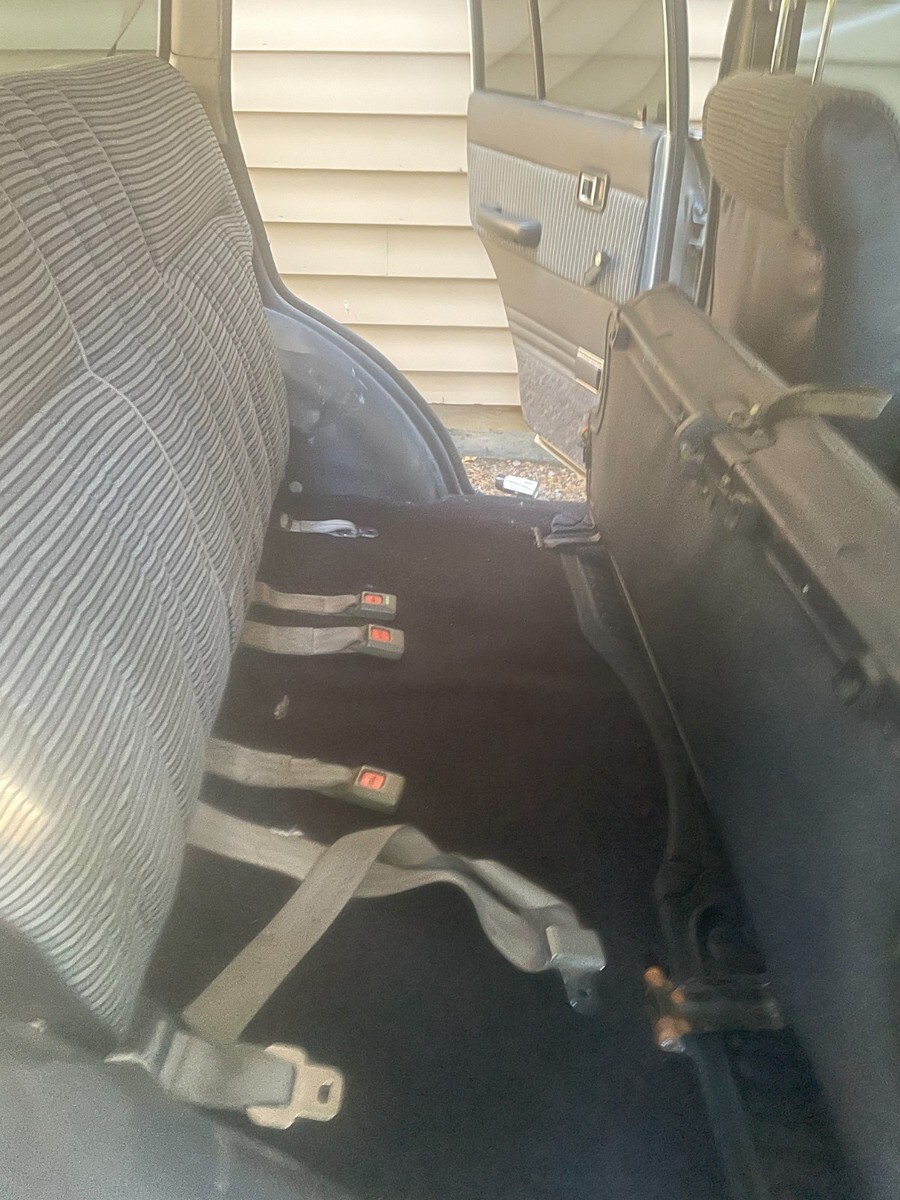 The AC was working but does not blow cold now - maybe just a recharge? The electric antenna does not go up. The rear washing fluid jet is loose. Middle row of carpet is new and black. Full carpet kit is included but not needed as all the carpet is in great condition. Two of the chrome trim pieces on the roof gutter are missing. Only this high end model had them so I could have just removed but I want the new owner to have the chance to replace.