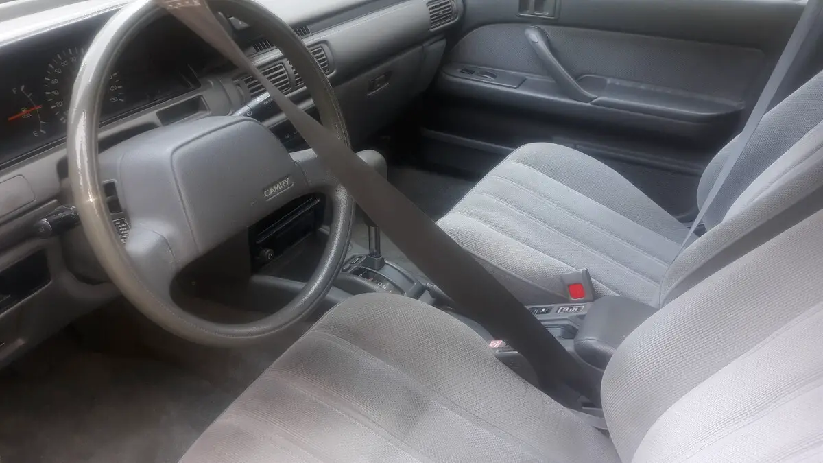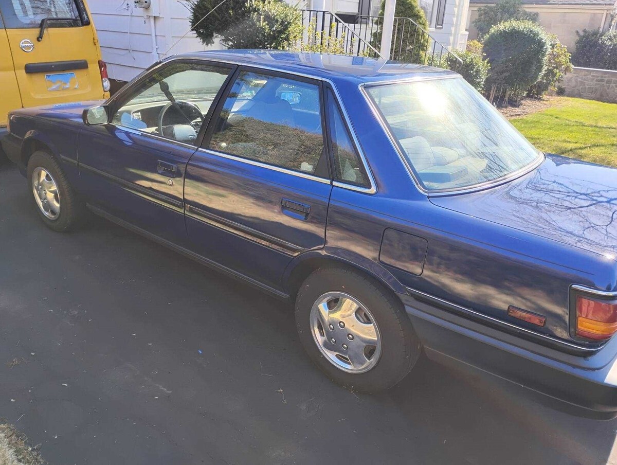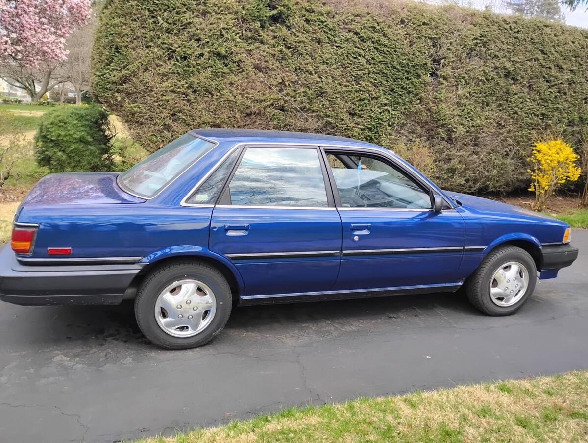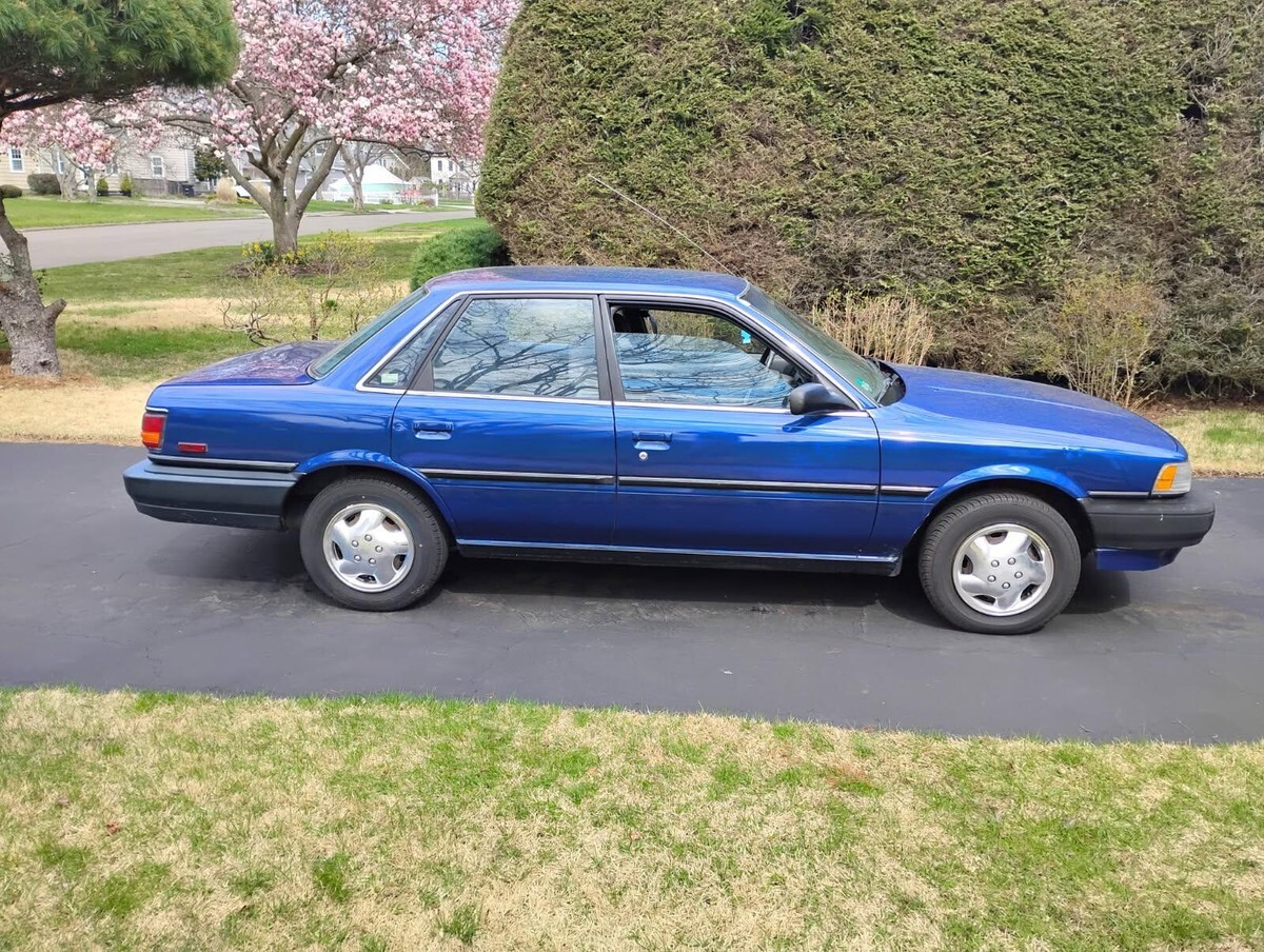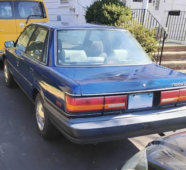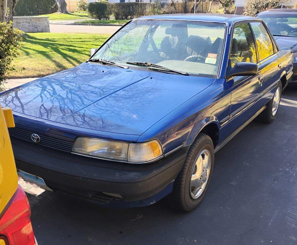 Here is a 1991 Toyota Camry (automatic trans). This was my first vehicle back in the 90s but I do not use it much anymore. It had a MAACO repaint about fifteen years ago and it's been largely garaged ever since. The color was changed from a darker red to the present metallic blue (exterior only, the interior door jambs, inside trunk, under hood, etc. are still the original dark red). It runs fine and looks good. It no longer requires emissions testing in CT. Due to its age I'm selling this car strictly "as is." The car has an average amount of paint scratches (one larger hairline paint crack on the driver-side fender is pictured as is a small area of rust on the passenger-side rocker panel). Overall, it's been a well cared for vehicle. Some extras included in the trunk are: the OEM radio (the car has an aftermarket JVC CD/USB radio installed) and an extra set of chrome-toned plastic wheel skins (hubcaps). Manual is also in the car.