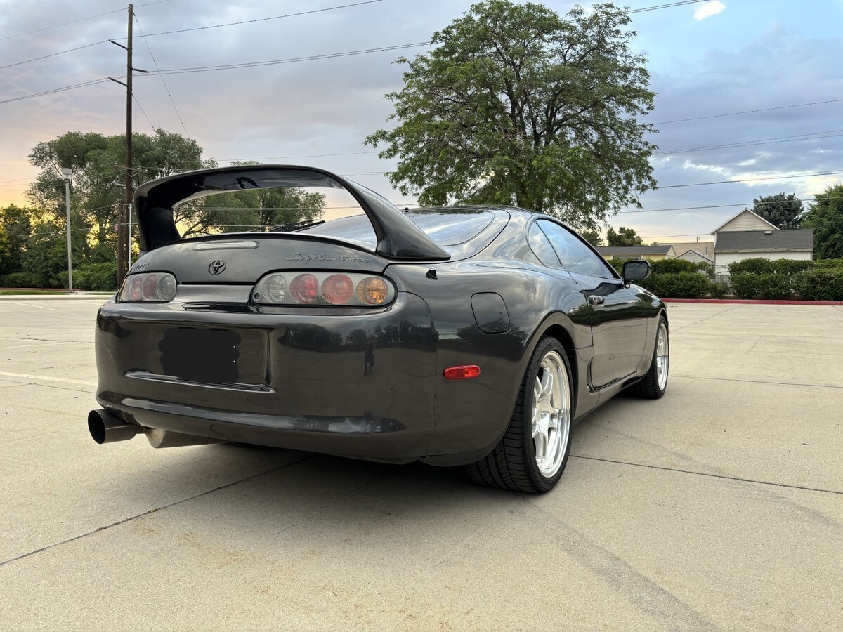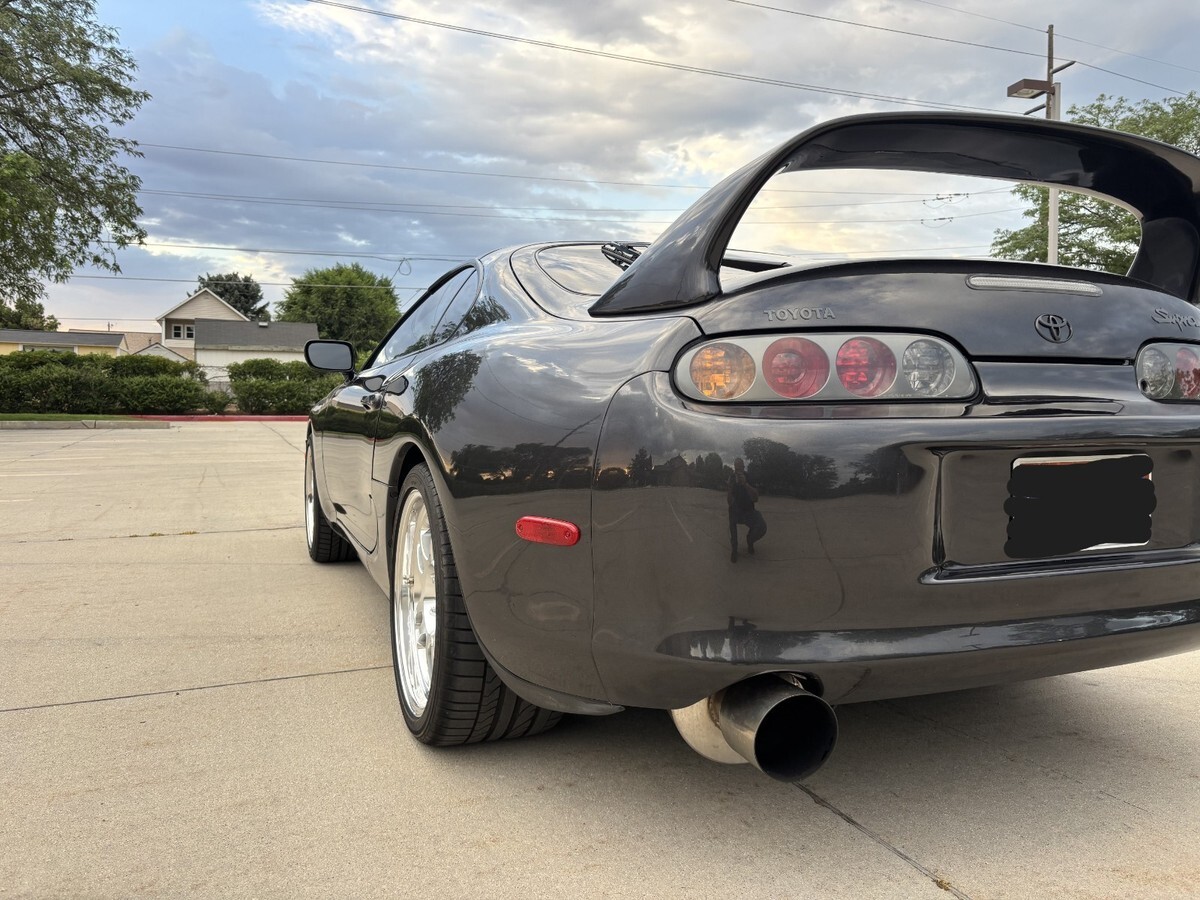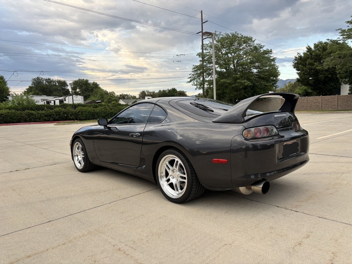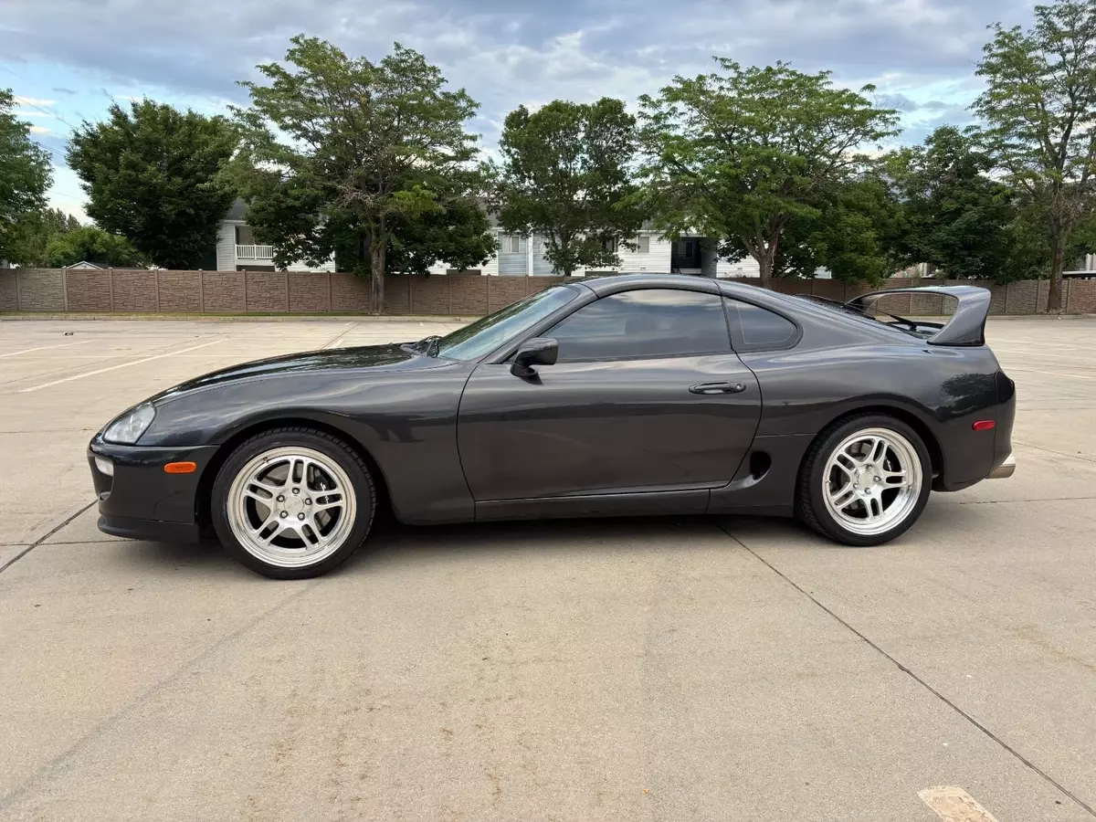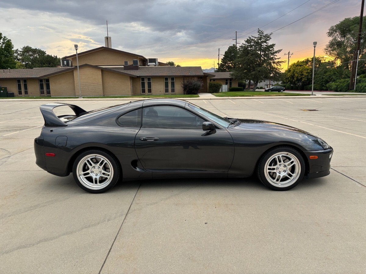 Up for sale is a 1993 Original Twin Turbo 6 speed chassis with 113,200 miles. Clean black interior. Chassis was originally red and has a complete respray to Lexus Graphite Grey Pearl. This Supra was brought into 2JZ Motorsports a few weeks ago and received a long list modifications to make it a super fun 800 hp street car. Here's a list of everything done to the Supra here at 2JZ Motorsports:Engine:Stock 3.0 2JZGTE engineHKS 264 camshaftsARP headstuds2JZ Motorsports modified coolant heatercoresetup2JZ Motorsports modified stock valve covers with 10an bungsNGK 2668 iridium spark plugNew oem waterpumpNew toyota red coolantMobil 1 10w30 synthetic with D3 toyota filterNew oem thermostatNew valve cover gasketsNew valve cover grommetsNew valve cover breather hosesNew intake manifold gasketsNew cam position sensorNew timing beltNew front main sealNew cam sealsEngine Management and Ignition:AEM 506 InfinityAEM adapter plug n play adapter harness5 bar map sensor100 psi fuel pressure sensor/failsafe setup150 psi oil pressure sensor/failsafe setupbosch wideband sensor/02 feedback failsafe setupIAT sensor2JZ Motorsports boost solenoid setup and wastegate hose setupBTI 4.3 touchscreen setup10 levels of traction10 levels of boostRolling anti-lag with flames2 step launch control with the big bangsJR Crosby full flex fuel tune from pump gas to E100, put in whatever gas you want and ecu will adjust power levels based on ethanolcontent.Turbo setup, intake setup, intercooler setup, cooling:Precision 6766 journal bearing turbo setupVWR tubular Vbandexhaust manifoldTial 60mm wastegate2JZ Motorsports 4 inch stainless downpipe and midpipeGreddy Super Dragger modied to fit 4 inch midpipe4 inch intake pipe and K&N filterStock intake manifoldGreddy 3 row Intercooler with TIAL 50mm BOV2JZ Motorsports coolant overflow reservoir2JZ Motorsports catch can setup with 10an breather linesj2JZ Motorsports coil coverFuel system:2JZ Motorsports 1100 hp flex fuel system, 1650cc injectors, dual walbro 450 pump setup, 8an fuel feed line, 10 micron fuel filter, continental flex fuel sensor, DeatschWerks fuel pressure regulator.Wheels, Brakes and Suspension:Fiske Profil 5s 18 x 9.5 front wheels and 10.5 rear wheelsMegan racing coiloversRebuilt oem brakes with new pads/rotorInterior:Clean original interiorNew 6 speed shift knobNew shifter panelNew radio panelNew mirror control panelUpgraded Kenwood double din radio with FOCAL speakersExterior:Clean titleFull window out paint job to Graphite Grey PearlNew front windshield and window moldings1998 headlights and taillights1998 turn signals and wiring setupBrand new lower rock guard plastic moldings all the way aroundBrand new Aero Magic Whifbitz style lower front lipThis Supra is all up to date and ready to be enjoyed. Paint and interior are in great condition and way above normal condition of a 30 year supra. It will not disappoint in person. Fires up everytime, easy to drive. The car does not leak or smoke. Pulls very strong to redline with no issues. I wouldn't hesitate to jump in this and road trip. All electronics work like factory. A/C blows cold, heat works great. Give us a call if you are a serious buyer and ready to buy. We are located 20 minutes from SLC, UT airport in Sandy, UT. We will offer a free inspection including compression test, inspection on lift, cut open oil filter and put the car on the dyno to show it makes the power we have shown. Please call if you have any questions. Thanks 801-940-3339