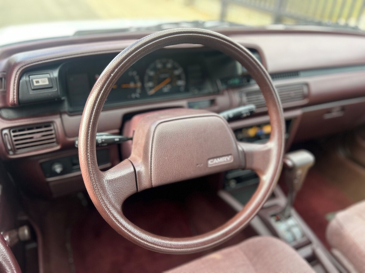 The interior of this Camry is a sight to behold, featuring a rich Burgundy/Maroon color scheme that exudes elegance and sophistication. The exterior is finished in a timeless White paint color, adding a touch of class to this vintage vehicle.