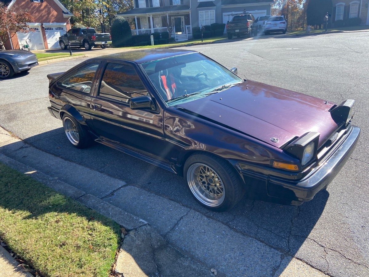 Super solid running car. Ready for cruising. This car starts, runs, and stops really well and is set up for cruising but could be morphed into a drift car.It has a super reliable 2004 Tacoma 2RZ engine, and matching (R150F) 5 speed manual transmission, swap with about 60k miles. The brake system is 100% reworked. The radiator and coolingsystem is all new.The shocks and suspension are totally updated as well.The exhaust system is new.There is no rust other than on the hood around a few edges.It has a roll cage and battery moved into the trunk with central disconnect.No leaks anywhere.So as far as drivetrain and mechanical, it’s 100% ready to drive.It still needs some small things like interior work, gauge work, climate control work.