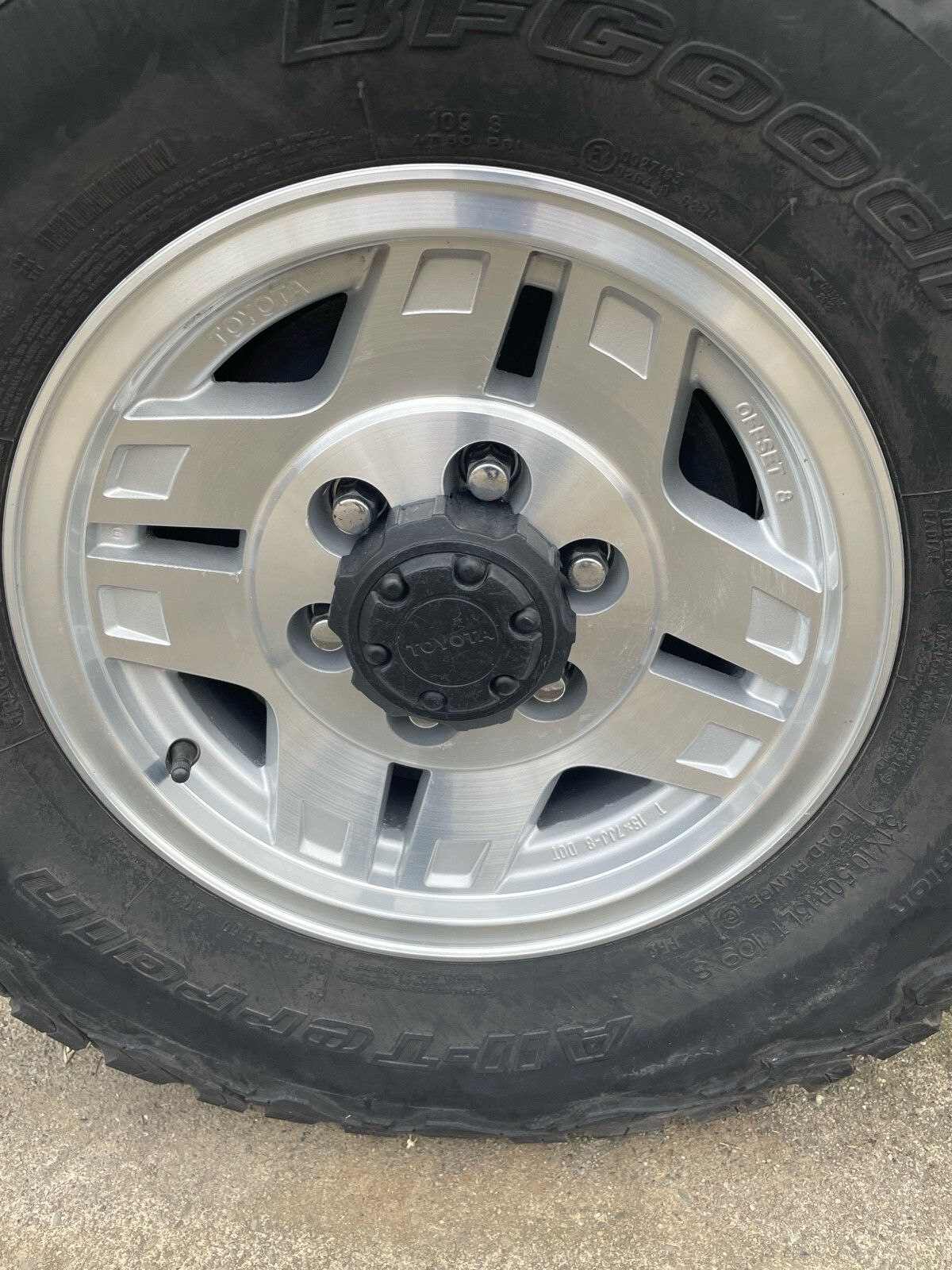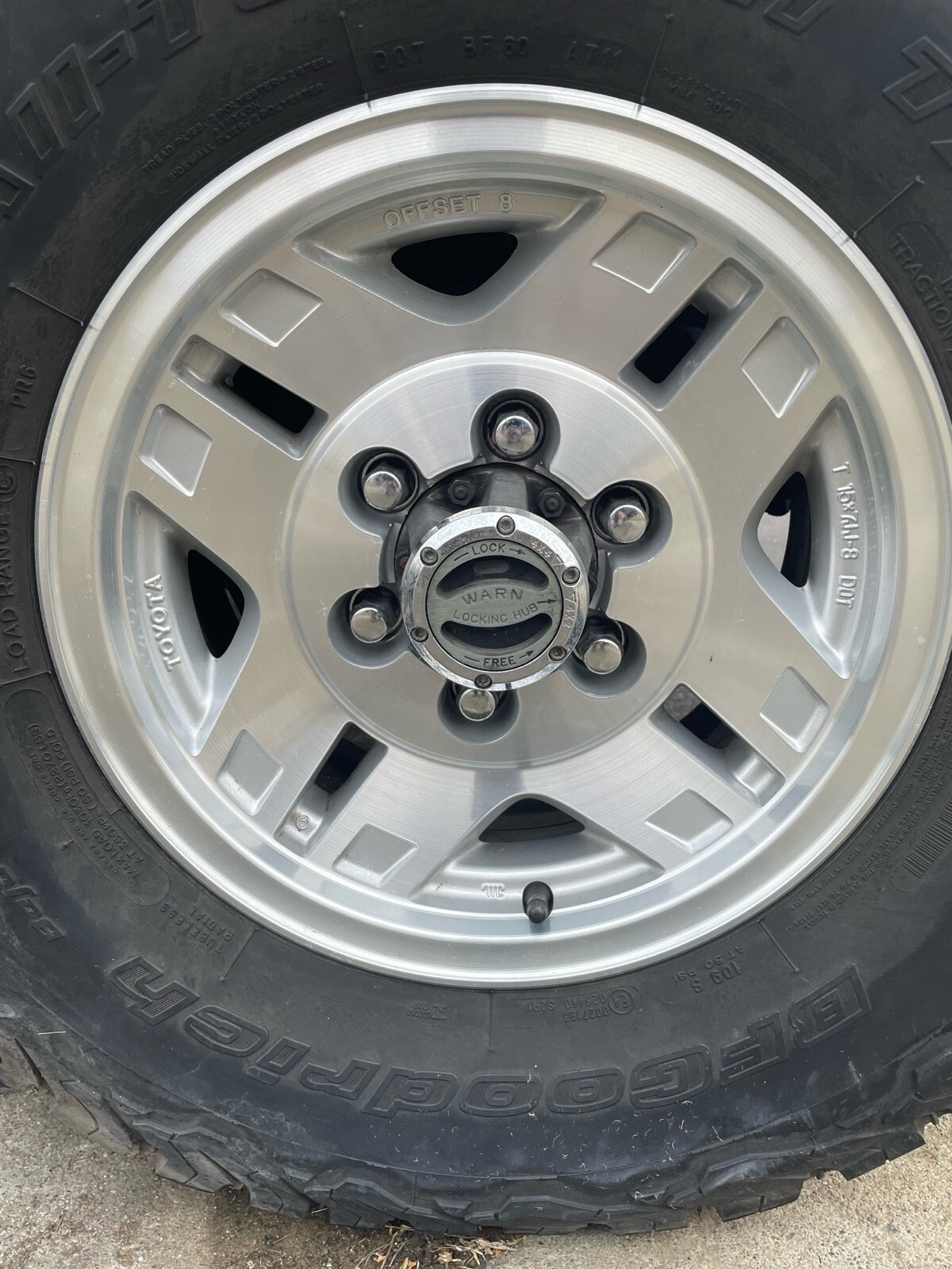 Fog lights front (removed for now) and rear. Manual Warn hubs, and have new-in-box Aisin hubs. Yakima roof rack rails. Refinished stock alloy wheels plus four Ion rims. JVC touchscreen stereo and alarm system.