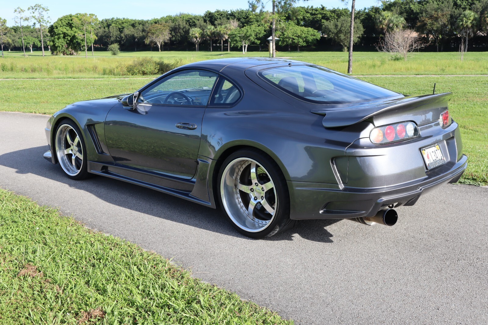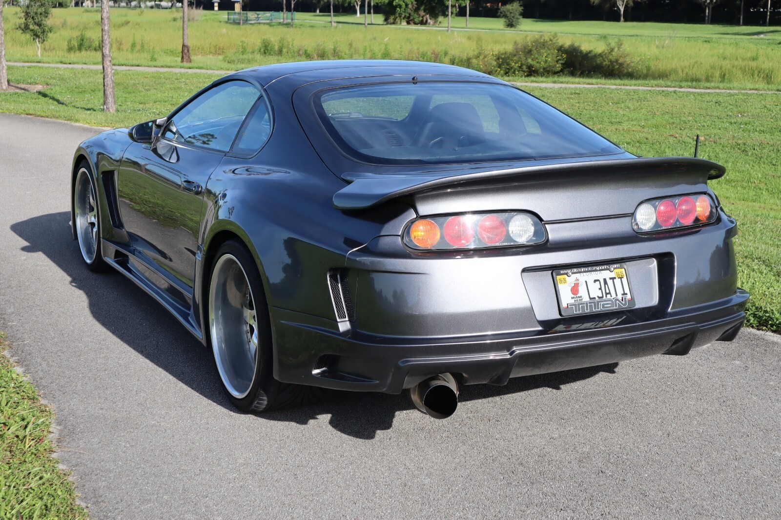 1994 Toyota Supra Turbo (MKIV) – Widebody – 6-Speed – 511 WHP – Low Miles. This clean-title, collector-grade example features a rare Top Secret Final Evolution widebody kit with flared fenders, vented hood, sculpted bumpers, carbon lip, smoked lights, Tein coilovers, 20” iForged wheels, and upgraded Rotora brakes. Refinished in sleek gray over Sparco buckets with factory climate control, it shows just 38k miles (~6k under current ownership). The legendary 2JZ-GTE has been converted to a single-turbo setup with HKS cams, ID injectors, dual pumps, FMIC, Haltech Elite ECU, and dyno-proven at 511 HP / 413 lb-ft. Power goes through the original 6-speed manual and Torsen LSD. Includes clean CARFAX, service records, and dyno sheets. Rare chance to own a professionally built, low-mile, street-ready MKIV Supra Turbo that turns heads at shows and delivers serious performance. Located in South Florida.