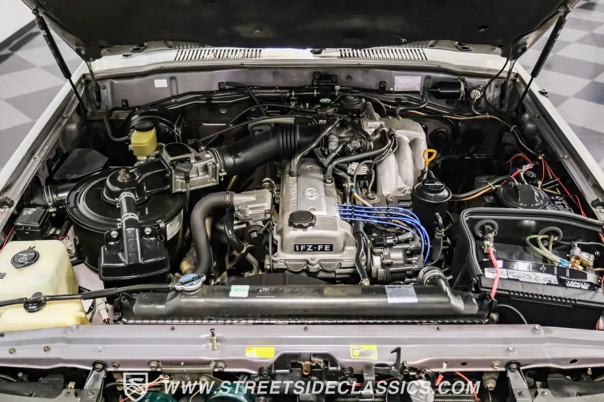 Under the hood, everything looks stock and well-kept. Power comes from a 4.6-liter inline-6 1FZ-FE engine with electronic fuel injection, paired with a 4-speed automatic transmission. Both the front and rear use coil springs, shocks, and a sway bar for suspension durability. The factory 16-inch alloy five-star wheels are wrapped in BFG All-Terrain 285/75R16 tires. Power disc brakes provide consistent stopping power in all types of conditions.