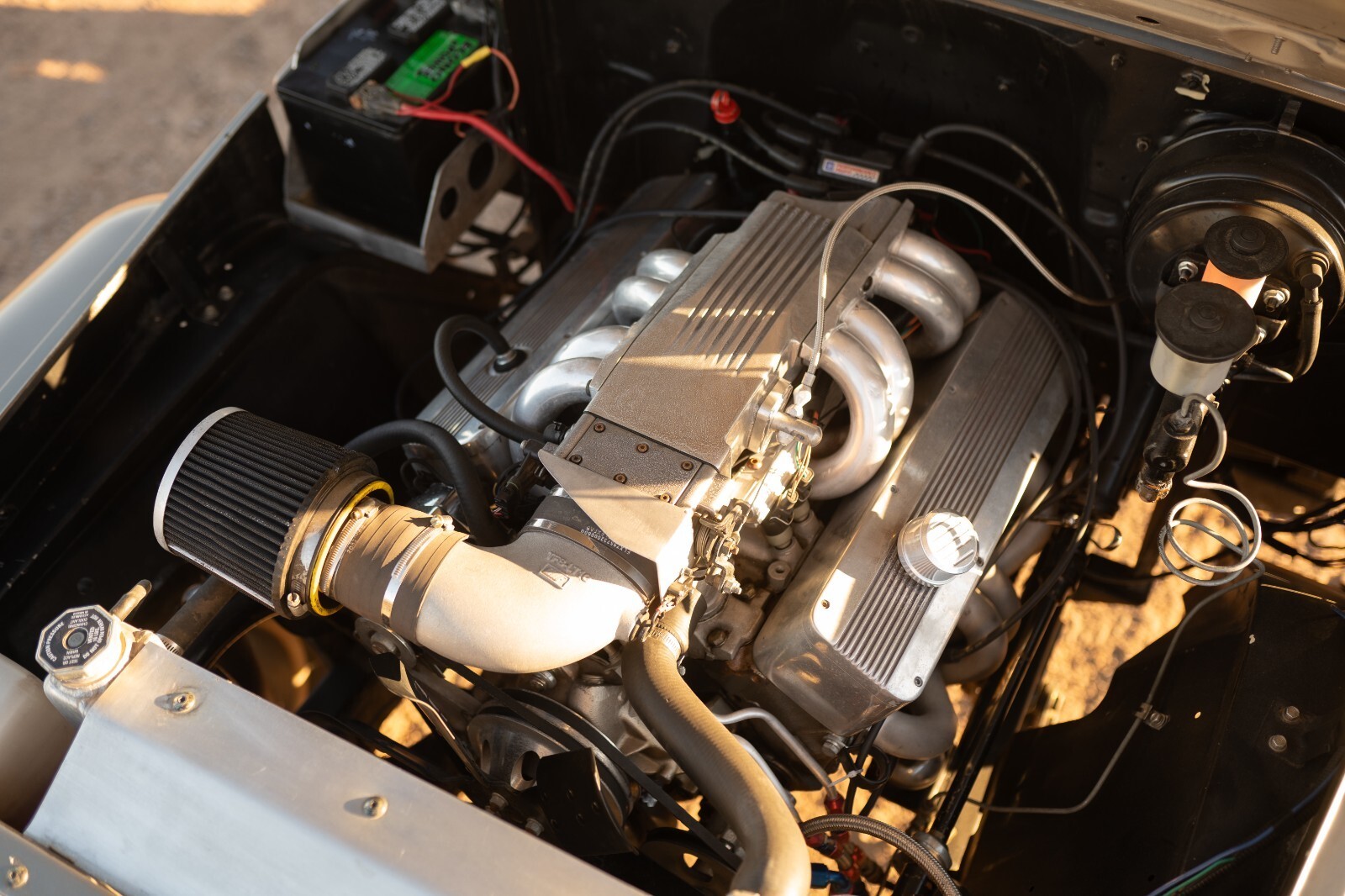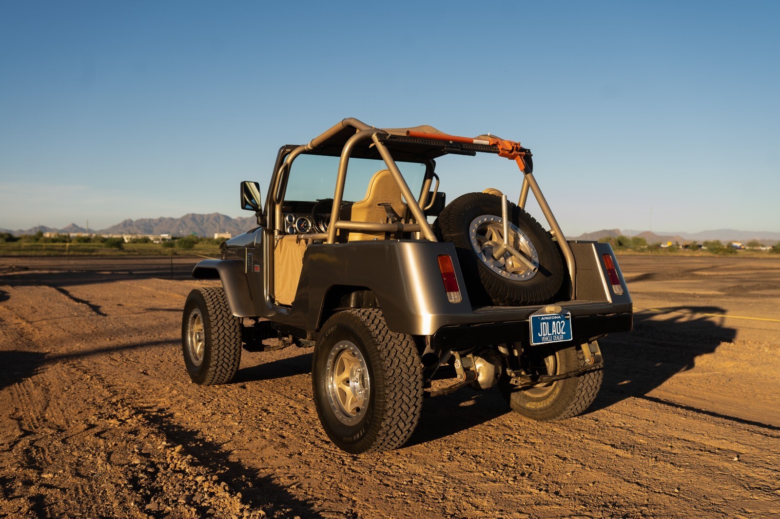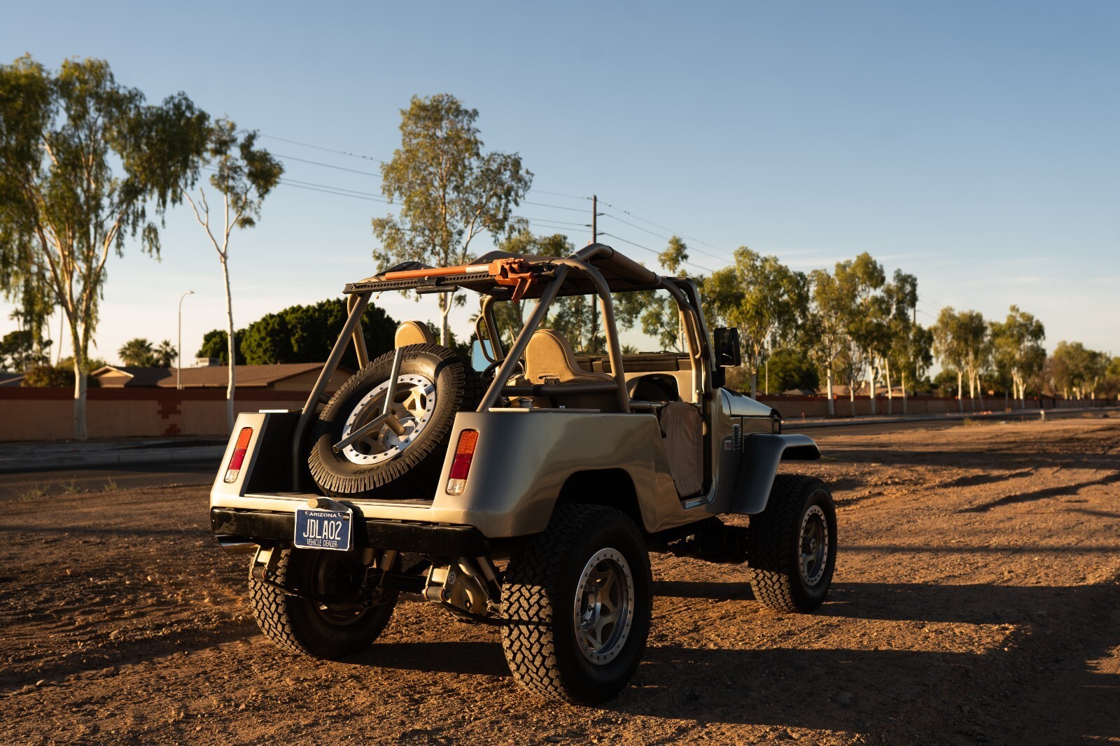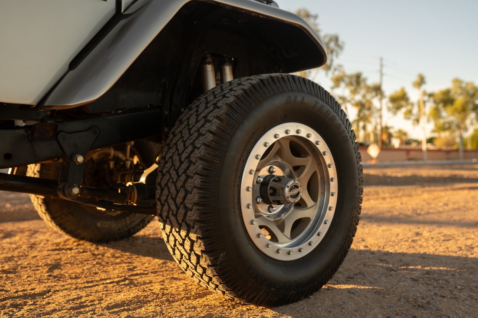 This FJ40 features a 5.7L LT1 Corvette V8 mated to a 3-speed transmission, providing a huge upgrade in power and drivability over the original inline-6. It fires right up, runs strong, and sounds incredible. The stance is lifted and set on Walker Evans wheels wrapped in all-terrain tires for a balanced on/off-road ride.