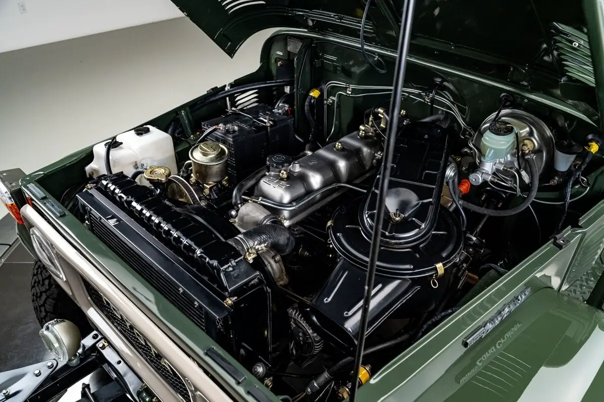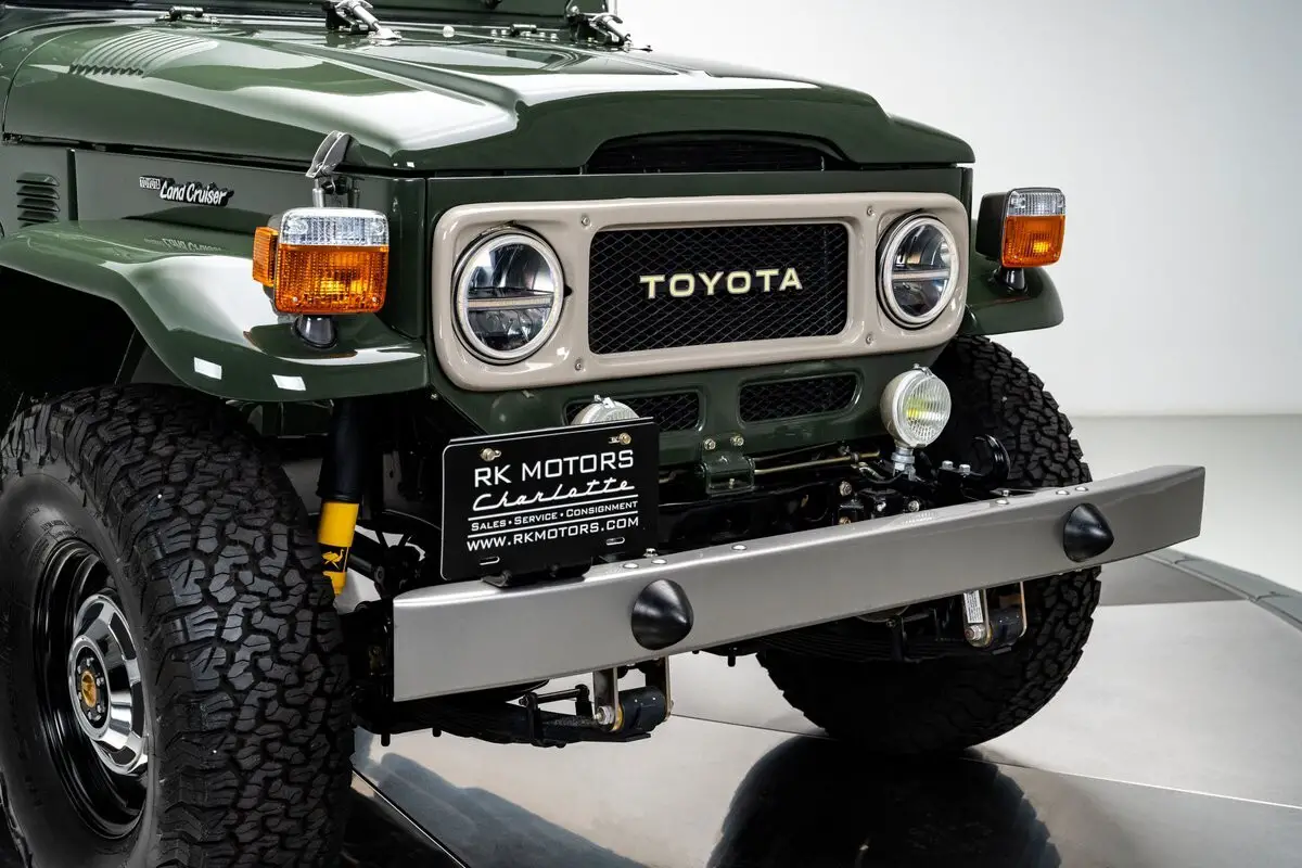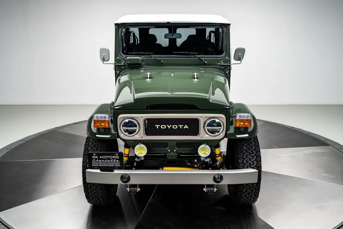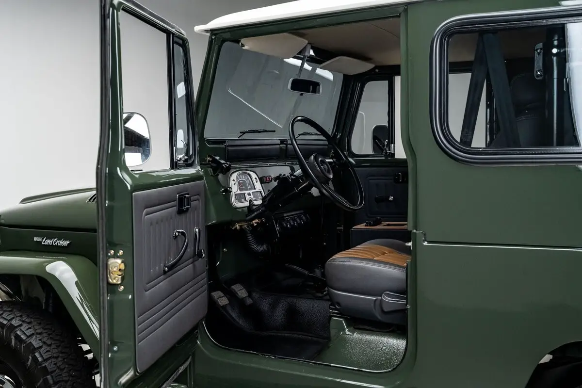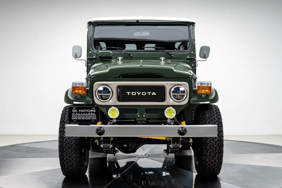 A properly restored FJ43 is already a rare sight in the United States, and this 1980 example stands out for the depth, accuracy, and finish of its work. It underwent a full body-off, nut-and-bolt restoration by Serviautos Especiales in Bogotá, a shop known for high-quality 40-Series builds, where the body was stripped to bare metal and refinished in Toyota green with a white roof and a fully rebuilt metallic cabin and roof structure. The truck is powered by a rebuilt 4.2L 2F inline-six paired with an upgraded 5-speed manual transmission and rebuilt four-wheel-drive components, with original Toyota axle housings and a full-floating rear running 4.11 gears and a limited-slip differential. Old Man Emu suspension parts, an OME steering