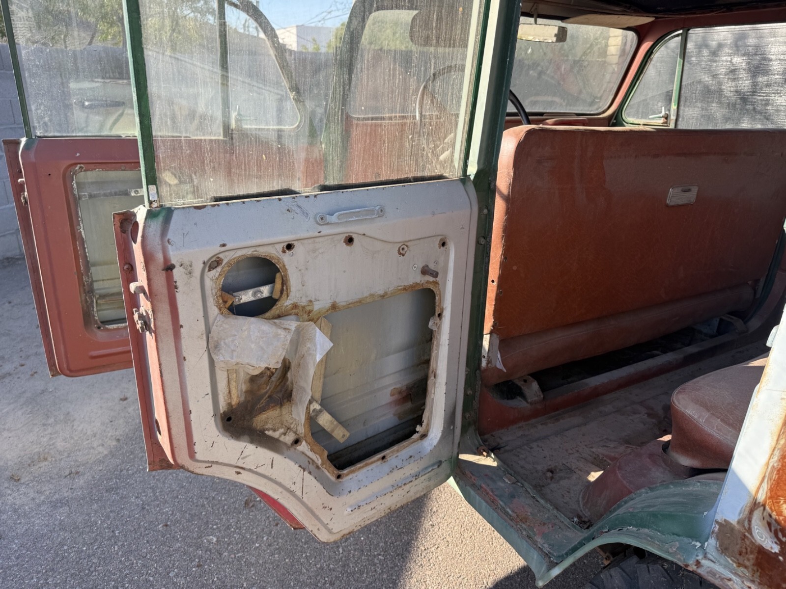 This particular example is an Arizona vehicle free of any rot. Those familiar with the FJ45LV series know they are notorious for major rot due to their double walled body construction. What you see in the underside pictures that is flaking is just paint. This truck is complete with the original seats (almost always missing), ALL of the original glass (pretty amazing), most of the original door hardware, and the original Toyota F135 engine. The engine is out, has been painted and ready to be re-mounted. Spins freely, and I have a gasket kit for it if you feel you'd like to go further with it.