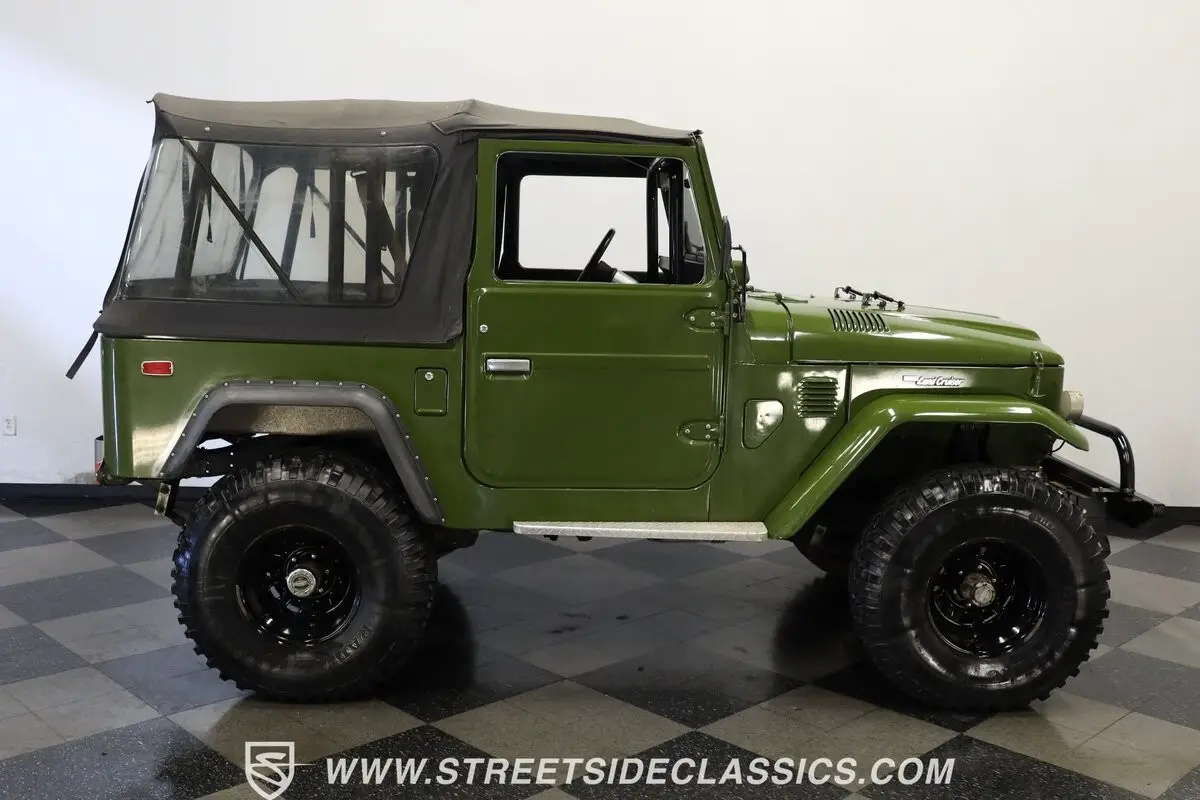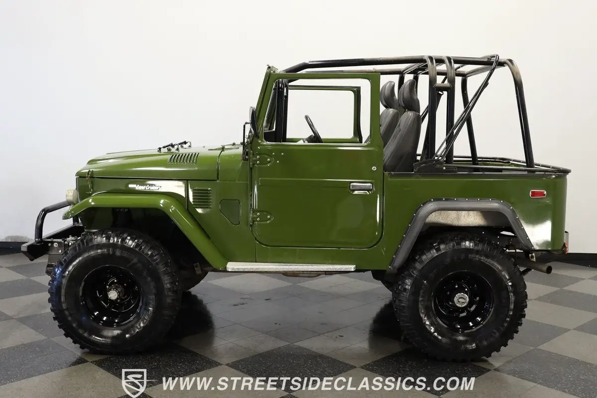 Combining a ruggedly stout appearance with an upgraded powertrain, this 1975 Toyota Land Cruiser FJ40 Restomod is one compelling ride. It's dressed in olive drab paint, a fitting homage to the Land Cruiser's longstanding military roots, and it has a very capable appearance that beckons you to jump inside, grab the wheel, and create new chapters of motoring adventure, both on and off the asphalt. Its distinctive color has a nice gloss, despite the enticement this off-roader presents for vigorous driving. Outfitted with a stance that strikes just the right balance between ground clearance and practicality for frequent driving, this classic is an outstanding representative of its model.