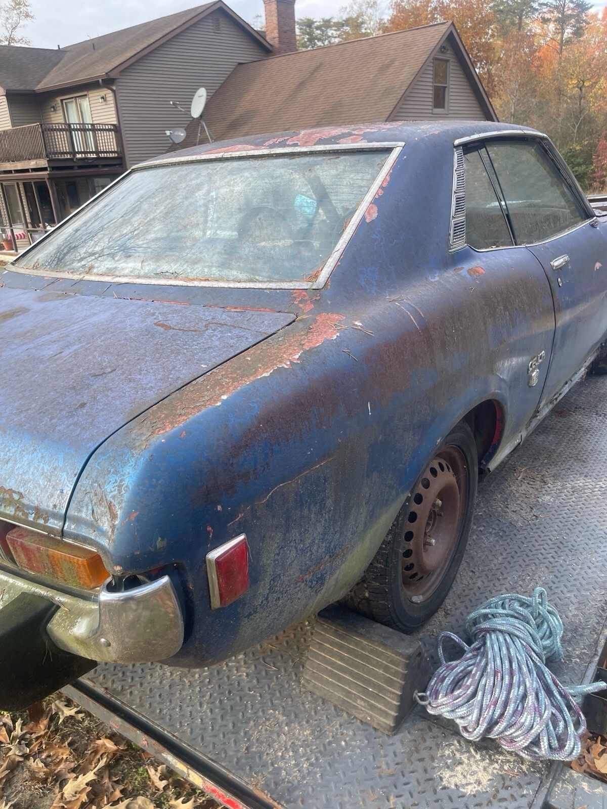 Car is mostly complete engine is out of the car just mocked in engine bay car has rust Rot trough will need floor land rockers and extensive metal and body work . Is a complete restoration project