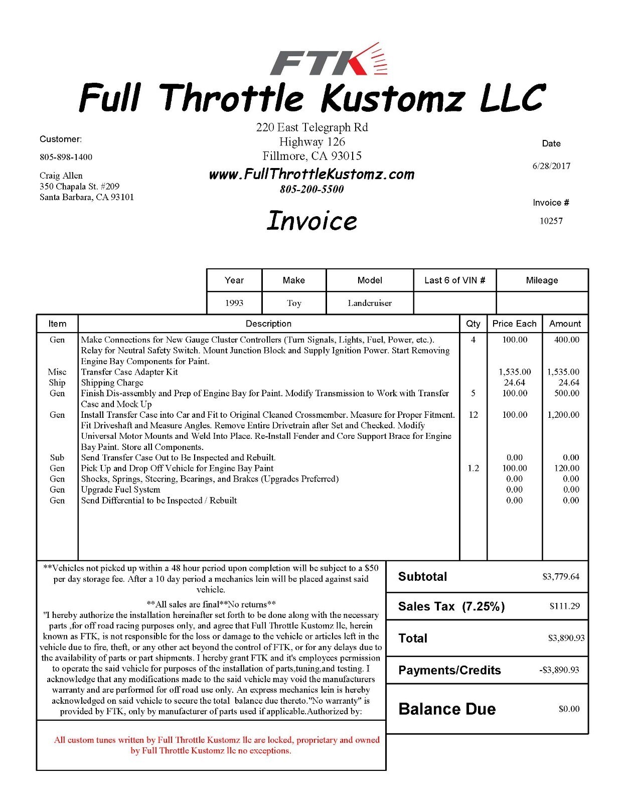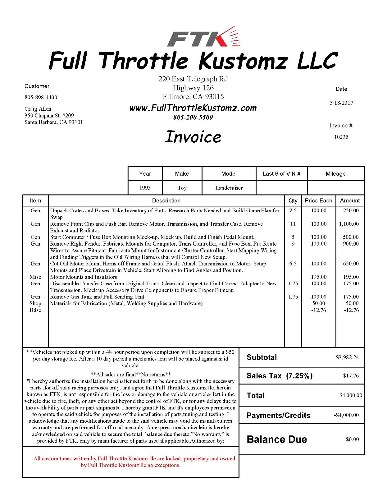 For your consideration, a 1993 Toyota Landcruiser with significant upgrades including a GM "Connect and Cruise" package with 6.2L LS3 engine an 4L65E automatic transmission. Tons of upgrades including Dakota Digital dash and cruise control, Fuel wheels with 35-inch tires, stereo, rebuilt transaxle and differentials, and much more. It needs paint and front seat recovering, but interior is otherwise in good condition - no cracks in the dash; backseats are in good condition for the age of the vehicle. It also is an original locking differential model with third seat. Exterior color is Dark Emerald Pearl (super dark green) with lighter gray leather interior. It definitely needs paint. I am the original owner. Message me with any questions. Sold as is (no warranty; no returns, etc.). I have more pics (40 images is the limit).