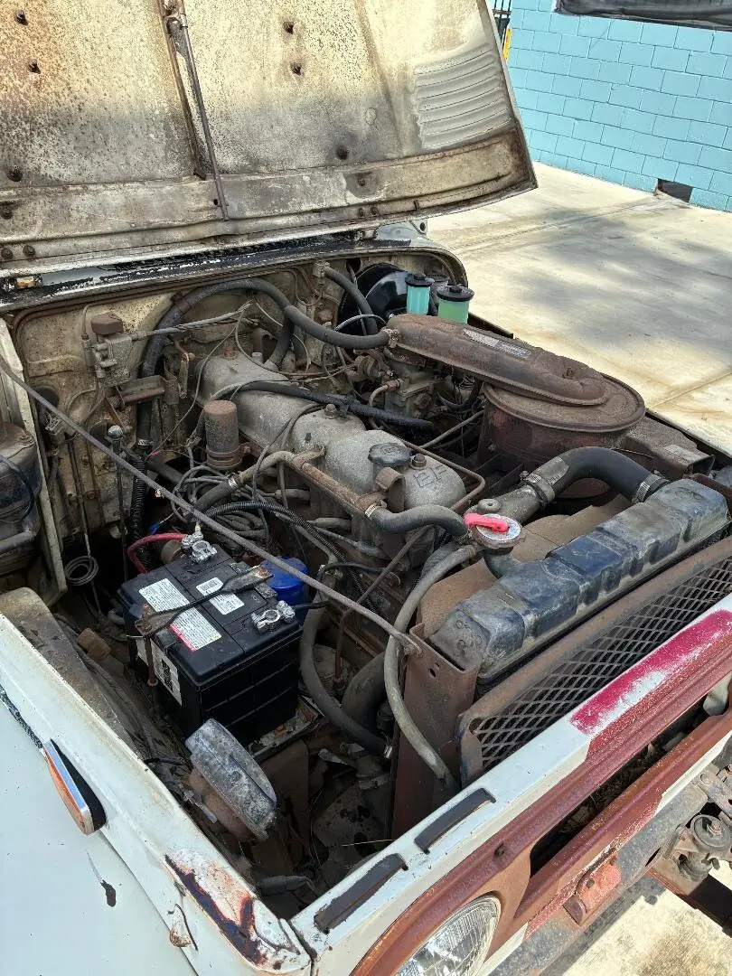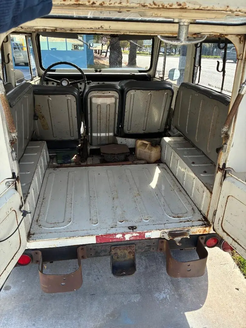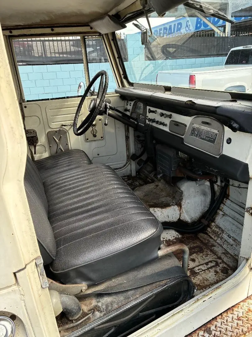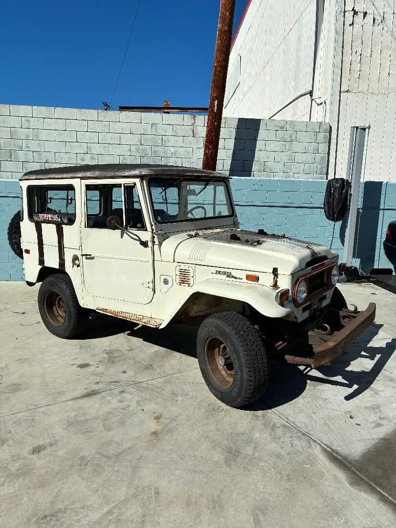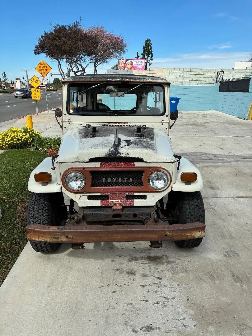 Selling a 1971 toyota fj40 land cruiser with recent full brake job alternator and regulator in really good driver shape all gears go in and out smoothly 3 speed manual trans on the column, wipers signals all lights work has exhaust hedder been in california all its life and never been offroad drives straight does have surface rust on body that is just on surface after 50 plus years on original paint. only spot where it has rust is just behind right rear tire look at pic which it may not even require a patch but other than that thing is well preserved.