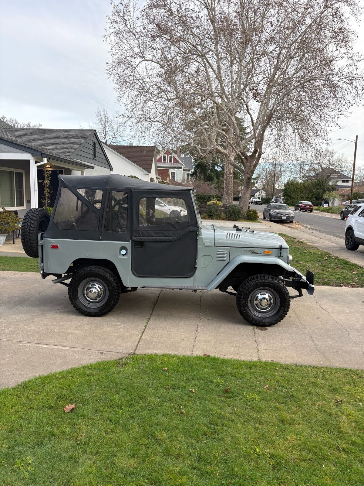 1972 Toyota Land Cruiser FJ40. Very original with only an engine swap to a SBC 283. Three speed manual transmission, and floor shift transfer case. Runs strong and straight down the road. Shifts right into 4WD. While it’s not perfect as the horn and wipers aren’t working, but it is a very straight body. Clean California title in my name.