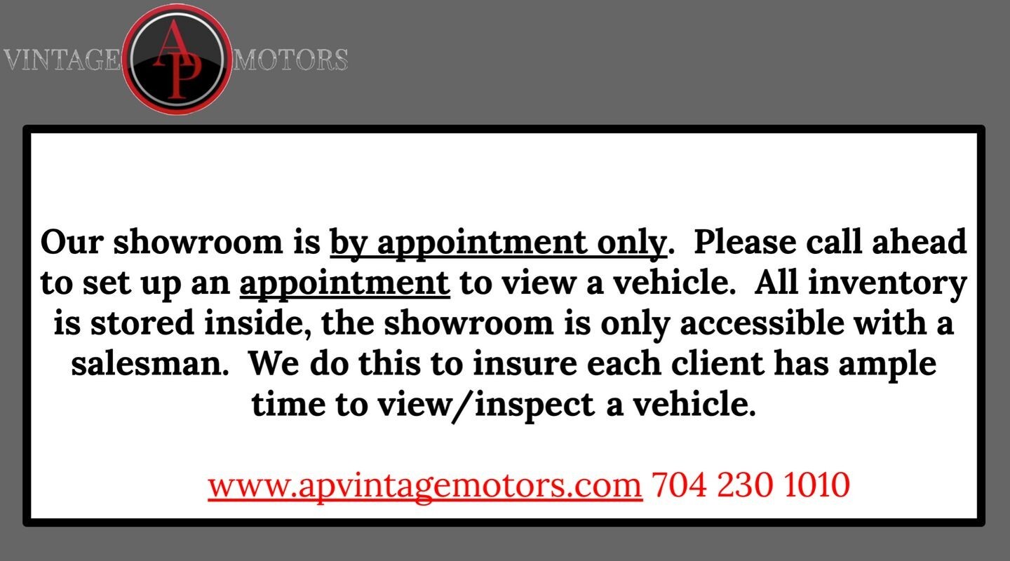 THE INFORMATION GIVEN IN THE DESCRIPTION ABOVE IS EITHER OUR OPINION, THE OPINION OF THE FORMER OWNER, OR BASED OFF OF VISUAL AIDS AND SHOULD NOT BE TAKEN AS FACT. IT IS YOUR RESPONSIBILITY AS THE BUYER TO CONFIRM OR DETERMINE SPECIFICS OF THE VEHICLE. PLEASE NOTE THAT WE DO NOT GUARANTEE ANY AIR CONDITIONING SYSTEMS, GAUGES, OR ELECTRICAL SYSTEMS. GIVEN THE NATURE OF THE VINTAGE VEHICLES WE SELL, THESE COMPONENTS CAN BE WORKING AT ONE MOMENT AND NOT WORKING AT ANOTHER MOMENT. IT IS COMMON THAT THESE COMPONENTS WILL NEED UPKEEP OR ATTENTION. IN ADDITION, MANY TIMES THESE VEHICLES SIT FOR LONG PERIODS OF TIME AND ONCE YOU BEGIN TO DRIVE THEM HARDENED SEAL AND GASKETS MAY BEGIN TO LEAK! CLASSIC CARS LEAK. PLEASE MAKE SURE YOU ARE COMFORTABLE WITH THIS BEFORE BUYING A VINTAGE AUTOMOBILE