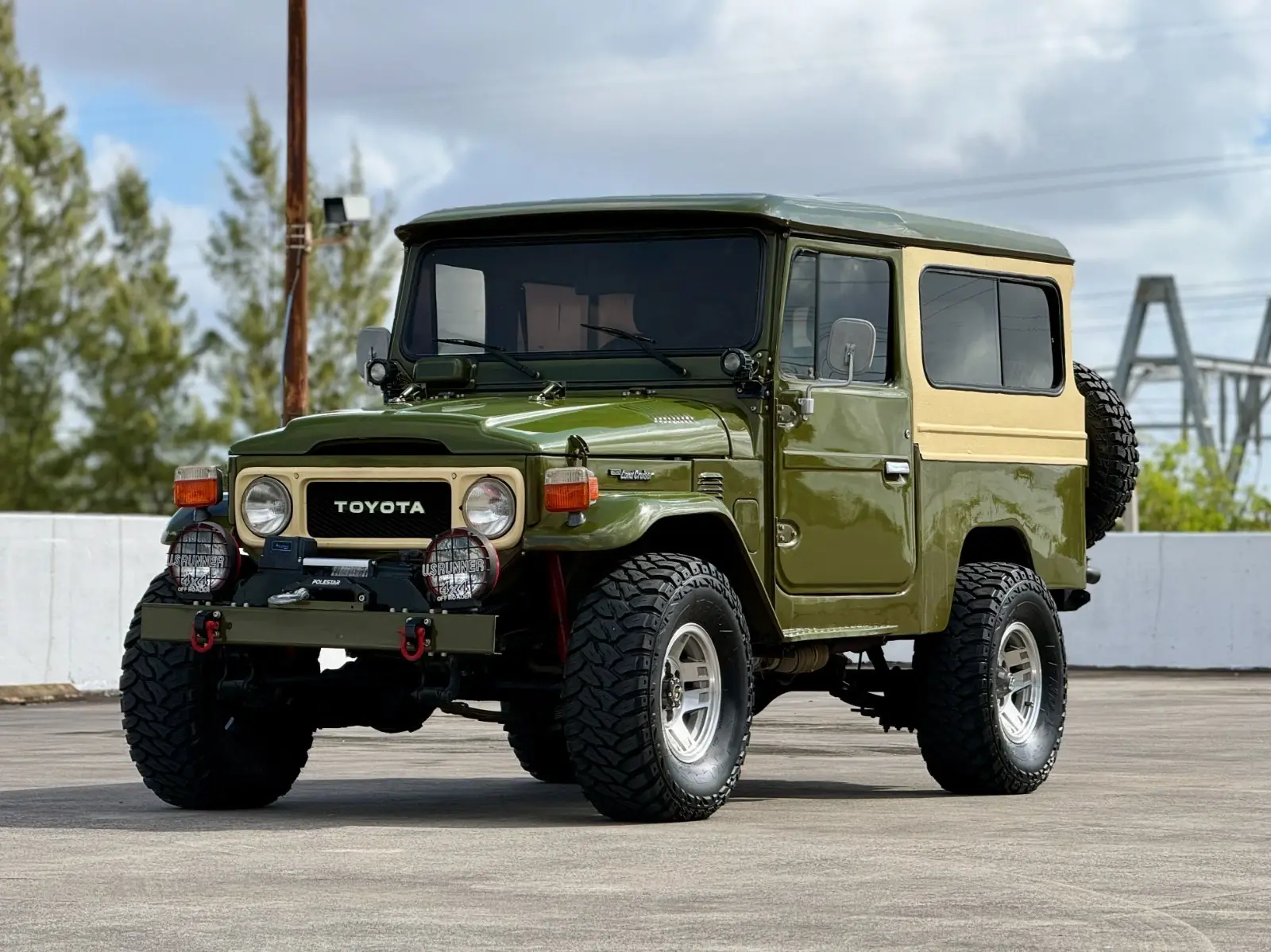 This 1979 Toyota Land Cruiser FJ43 is a long-wheelbase example that has been refurbished and tastefully modified as a restomod. Finished in a two-tone olive green and beige over a custom tan interior, it presents as a clean and well-executed build that blends classic Land Cruiser character with modern comfort. The truck shows 38k miles and is offered with a clean Florida title.