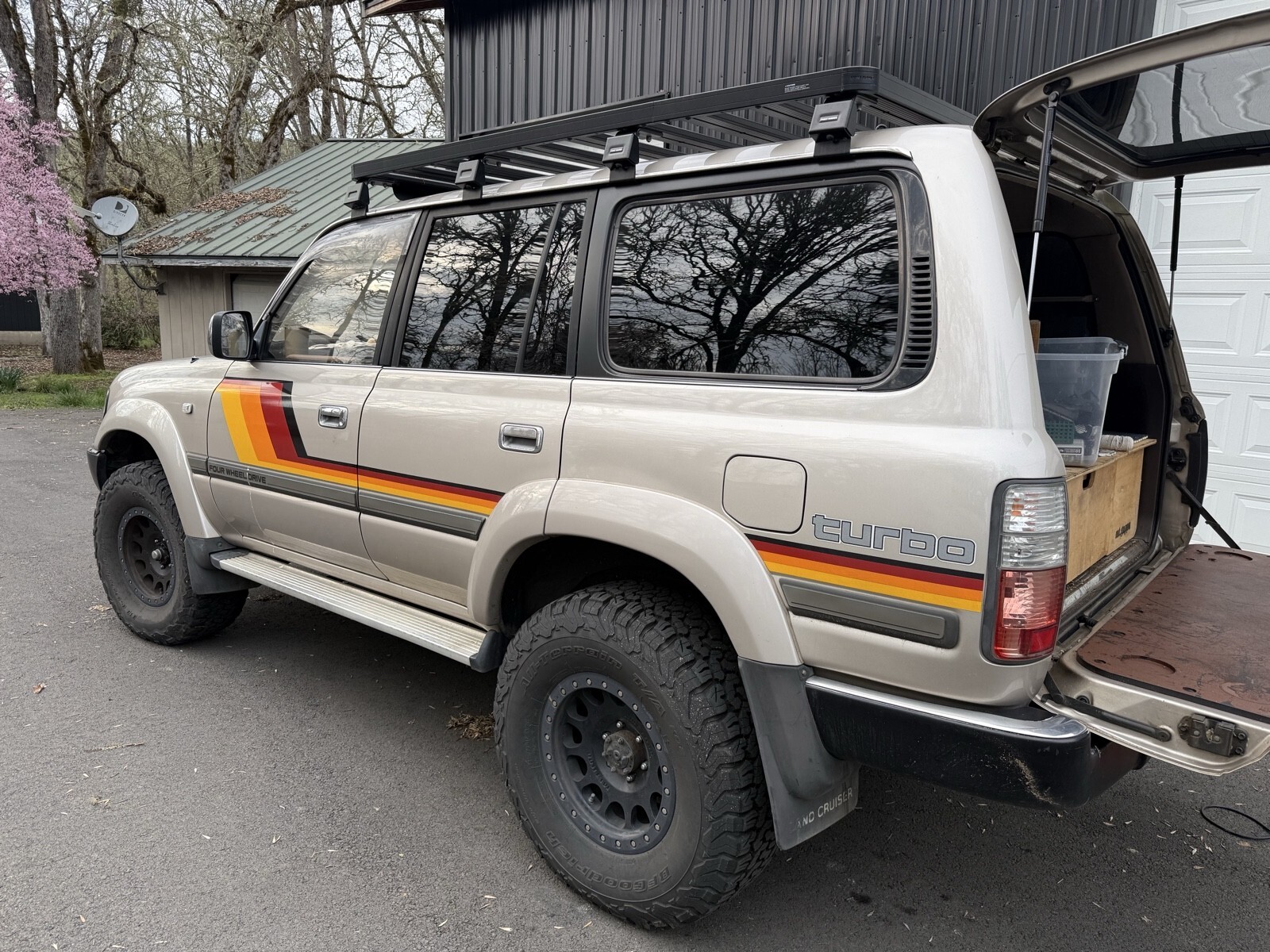 1991 hdj81 356xxx. I’ve owned it for 5+ years and have driven it all over the country and it’s been amazing Oregon fuel injection rebuilt the heads along with the injection pump and injectors. ACL BEB done recently along with timing belt and water pump. Gturbo green wheel Radius fab airbox ARP headstuds Pdi intercooler 3” legendex straight through exhaust with muffler included. 3” dominions lift with mmr 5x method beadlocks with 35” ko2s. 4x stock or aftermarket 17” rims with 35” cooper MT with 75% plus tread front runner roof rack Drawer setup in rear Bunch of miscellaneous stuff included. Stock turbo is included and stock airbox