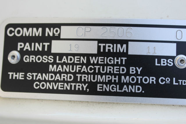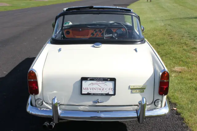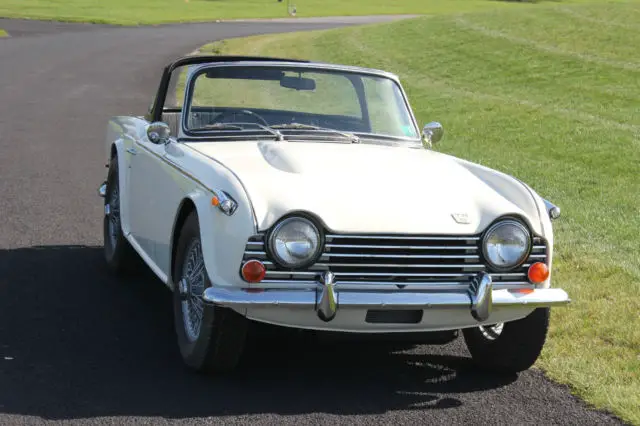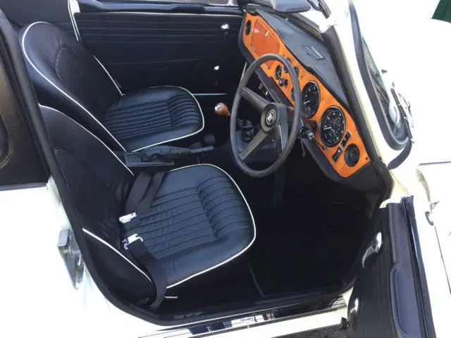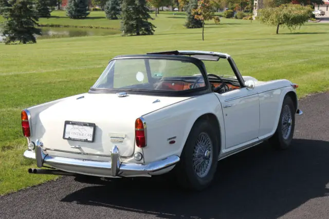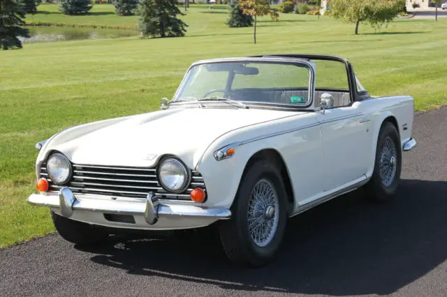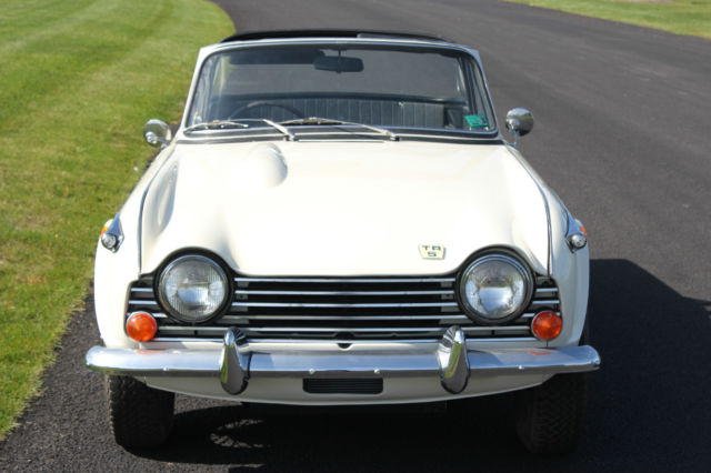 Chassis# CP/2506-0 Engine# CP/2515-E A 1968 Triumph TR5 PI Roadster, RHD, all matching numbers. White with a black leather interior. Wire wheels. Overdrive. The original owner had it shipped from England to Myrtle Beach in the late 70’s. The second owner had it container shipped to Hawaii in 1992 where it sat untouched until 2009 when it arrived in Ohio. Has a Surrey top. It has just undergone a ‘nut and bolt’ restoration which includes a new leather interior, bodywork/paintjob and a lot of mechanical work. No expense was spared. $8100 was just spent on service and mechanical work. Comes with an extensive history (which includes the British Heritage Certificate), paperwork and all the books. The car has 64,000 original miles. Runs and drive superb. A highly collectible Triumph to own and drive, one of only a handful in the US!! Any questions welcome. Please message or call Frank Sajjad at 2166452100. (We can help to make arrangements for worldwide shipping.) Shipping cost to Rotterdam or Felixstowe, UK is $1,500